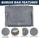 Large Capacity: Buruis large toiletry bag measures 11 x 6.2 x 8.8 inches (27.94 x 15.75 x 22.35 cm), and the X-Large size is 12.5 x 7.3 x 11 inches (31.75 x 18.54 x 27.94 cm). Whether for personal trips or family travel, you can easily pack all your toiletries into one bag, avoiding the hassle of carrying multiple smaller bags Soft and Lightweight Nylon: The large-size toiletry bag weighs only 12.35 oz (350g), while the X-Large size is 17.64 oz (500g), making it so lightweight that you’ll hardly notice the bag’s weight when traveling. Made from soft nylon, the material is durable, water-resistant, and scratch-resistant, ensuring long-lasting use and protection for your belongings Multiple Pockets and Compartments: The toiletry bag has more pockets and compartments than you might expect! It features 2 top mesh pockets ideal for small items like medicine and wet wipes. There is also a large main storage pocket for travel-size and normal-size toiletries, with internal compartments designed to keep liquid bottles upright. Additionally, the 2 side pockets are perfect for long, slim items such as makeup brushes, toothpaste, toothbrushes, and more Practical Hanging Hook: Our hanging toiletry bag features the HANGING function, the metal hook helps you hang the whole bag on the wall, especially in a narrow bathroom, camping tent, or RV. The hanging toiletry bag would save space and be convenient for accessing items while bathing Smooth Double Zipper: Far differing from other toiletry bags Buruis Dopp kit adopted aluminum alloy double zippers. The zipper is smooth and strong, so you can zip the bag easily with full items. When one zipper is broken the other is still working Strength Handle: The handle is durable and seamed tightly on the bag, the max holding weight is 30 lb. You can carry it easily on travel with full toiletries without worrying about the handle strip breaking. The X-Large size bag has an extra shoulder strip which is effective to carry Product Description 1 Large Main Bag 2 2 Top Pockets 3 Compartments 4 2 Side Pockets 5 Outside Pockets 1 Shoulder Strap 2 Carry Handle 3 Double Zipper 4 Hanging Hook 5 Water-Resistant Usage Scenario 1 Gym 2 Bathroom 3 Beach 4 Camping 5 Travel