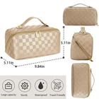 Stylish Travel Makeup Bag - Elevate your travel experience with the sleek and stylish Travel Cosmetic Bag. Its sophisticated design, featuring PU lining both outside and inside, not only keeps your beauty essentials organized but also adds a touch of elegance to your travel accessories. The PU inside lining makes it incredibly easy to clean, even when faced with makeup stains, ensuring your bag stays in pristine condition. Large capacity travel toiletry bag - Measures 9.84 inches in length, 5.11 inches in width, and 5.11 inches in height. 2 main compartments with 4 small pockets neatly organize your makeup. The 2 large compartments easily hold travel-size toiletries or large skin-care products. The two side pockets hold your concealer, lipsticks, or other small travel must-haves. The middle pouch attached to the floor of the bag helps to keep things organized, while the checkered outer lining adds an extra layer of durability. Lightning-fast access design- Experience the ultimate convenience with our travel toiletry bag's innovative 180-degree wide-open design. Effortlessly access all your makeup essentials in an instant. Say goodbye to frustrating searches and hello to a seamlessly smooth beauty routine. Multifunctional & Practical - Not only as a cosmetic bag and toiletry bag, but also as an accessory organizer bag. Made of upgraded PU leather, this waterproof and lightweight travel essential is soft, comfortable, and tough. Suitable for home, outdoor, and travel, this multi-functional makeup bag makes your life more convenient and easy. Perfect gift - Simple and elegant travel must-haves, the cosmetic bag could be used as a birthday gift, Christmas gift, graduation gift, anniversaries gift, and Valentine's Day present for your mom, wife, girlfriend, yourself, and other friends.