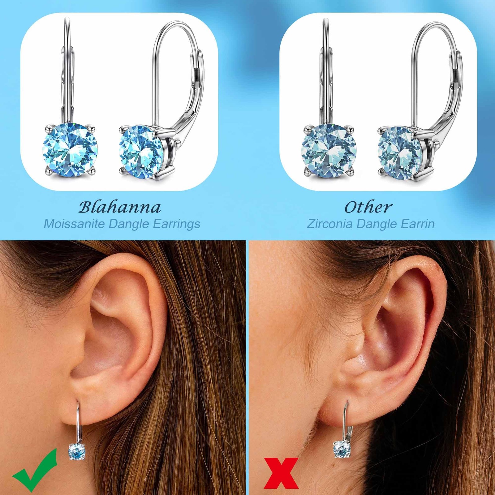 Moissanite Earrings,1.0ct-2.0ct D Color Brilliant Round Cut Earrings Sterling Silver Dangle Earring Moissanite Leverback Drop birthstone4 Premium Moissanite Earrings- Created Brilliant Round Cut Moissanite/925 Sterling Silver. Hypoallergenic, lead-free and free Nickel. Will not make your ears green, red or itchy Dangle Earrings Detail- Created moissanite earrings are made from 1.0ct-2.0ct D Color Moissanite. Easy to adjust and keep secure Brilliant round cut moissanite- Each moissanite has been rigorously tested by the GRA (Global Gemological Research Association). The waist of the gemstone is engraved with a laser inscription. Moissanite shines brighter than a diamond, and will not chip as easily or lose brilliance as fast. More prefect for your daily wear Ready for gifting- This unique and heartfelt product is beautifully packaged and ready for giving. Makes a sentimental surprise for any awesome lady. Wonderful gift for Sister, Wife, Friends, Mother, Daughter for Wedding, Party, Meeting, Holiday, accidents surprises, Anniversary day, Valentine's day, Bridal Shower, Confirmation and more Great customer services- All our moissanite jewelry arrives with a delicate gift box, best for presentation and protection of the earring. If you have any problem with our product, please feel free contact us, we will try our best to solve it