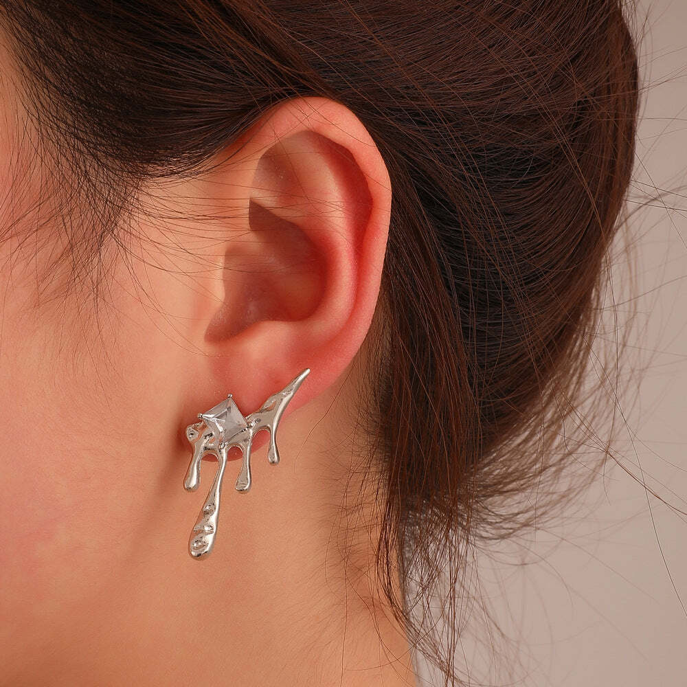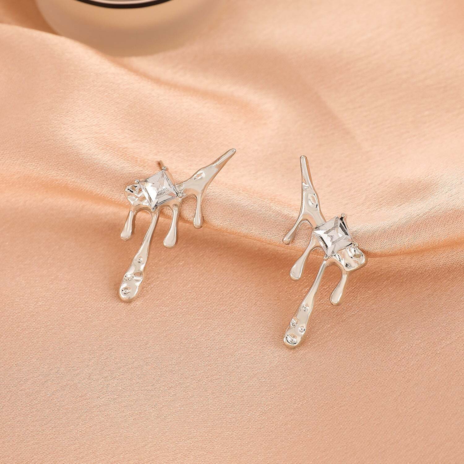 Hypoallergenic COLOR: Silver MATERIAL: Copper, Rhinestones LENGTH: 2 inches WIDTH: 0.75 inches