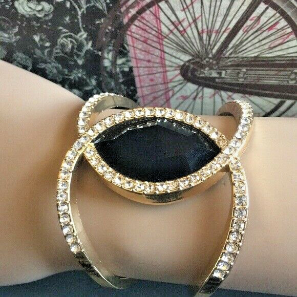 Stunning Rhinestone Bracelet Bangle Fits up to a size 7 wrist Half-Cuff *ONE STONE MISSING AS PICTURED*