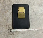 Speidel Money Clip Card Holder, New With Tag In Packaging. Men’s leather card holder with gold money clip, space on money clip to engrave initials if you wanted. (See photos) Engraving not included. Space to hold a card or 2 and a money clip.