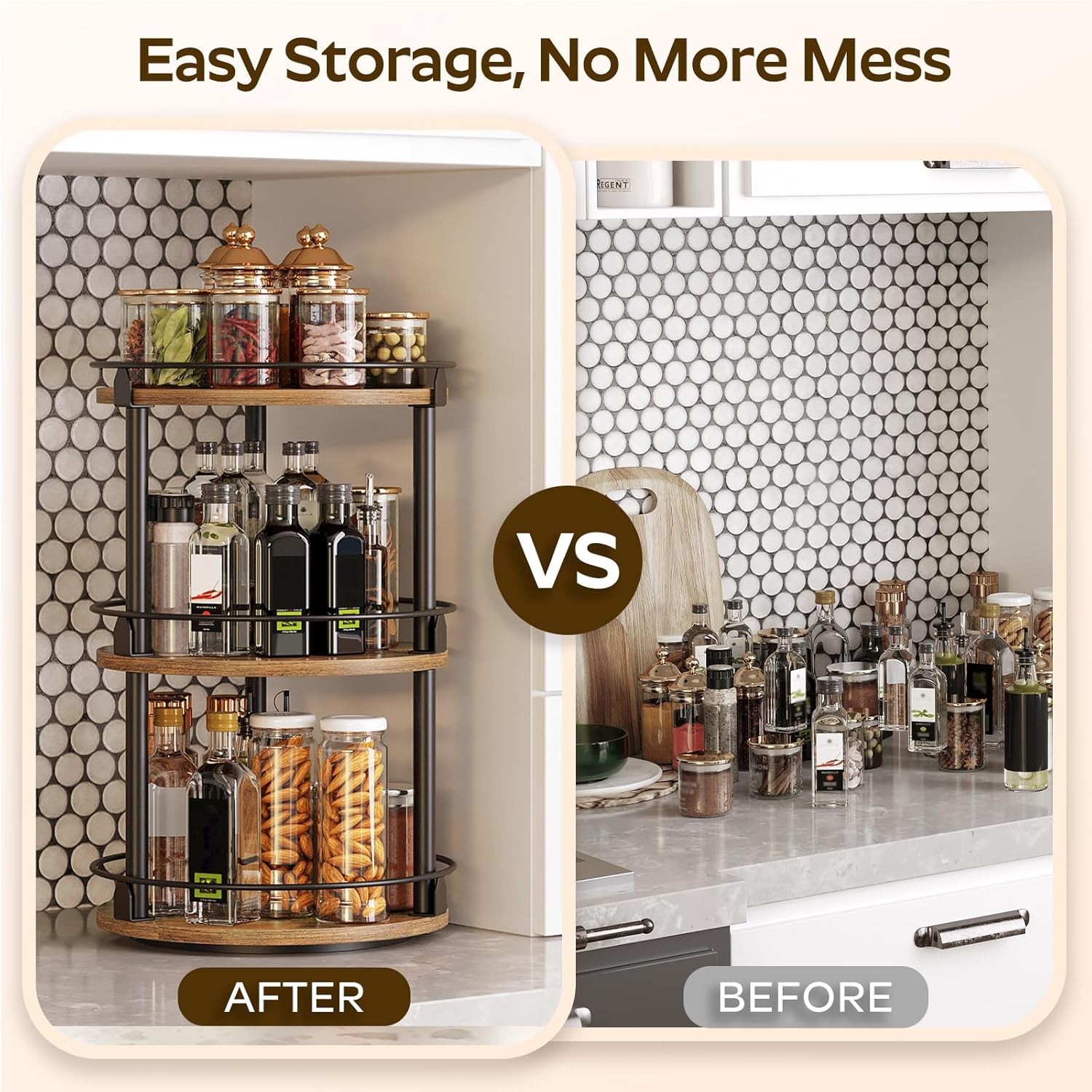 You may also like 2 Tier Bamboo Stackable Storage Bins 4 Compartment Potato & Onion Storage 43.46 USD 46.23 USD Free shipping 6% off Over The Sink Dish Drainer Drying Rack 2 Tier Full Stainless Steel Storage 81.06 USD 86.23 USD Free shipping 6% off 3-Tier Over The Sink Dish Drying Rack,Stainless Steel Dish Rack W/ Cutlery 63.43 USD 67.48 USD Free shipping 6% off Over The Sink Dish Drying Rack,Expandable 2-Tier Stainless Steel Over The Sink 54.76 USD 58.26 USD Free shipping 6% off Stainless Steel 2-Tier Over The Sink Dish Drying Rack W/ Utensil Holder Large 55.2 USD 58.72 USD Free shipping 6% off Over Sink Dish Drying Rack Expandable Large Drying Rack Suitable Most Sinks 61.08 USD 64.98 USD Free shipping 6% off Over The Sink Dish Drying Rack Over Sink Dish Drain Drying Rack Kitchen Storage 79.88 USD 84.98 USD Free shipping 6% off 4-Tier Bakers Rack Kitchens W/ Storage Mini Fridge Stand Microwave Oven Stand 129.23 USD 137.48 USD Free shipping 6% off 4 Tier Bakers Rack W/ Metal Pegboard Hooks Kitchen Storage Shelf Utility Stand 53.43 USD 85.04 USD Free shipping 37% off 3-Tier Stackable Shelving Unit Storage Rack Adjustable Kitchen Cabinet Organizer 51.09 USD 54.35 USD Free shipping 6% off Bamboo Folding 2-Tier Collapsible Drainer Dish Drying Rack with Utensils Holder 44.73 USD 47.58 USD Free shipping 6% off Can Organizer for Refrigerator Stackable Can Holder Dispenser w/ Lid for Fridge 39.97 USD 50.98 USD Free shipping 22% off About this item Smooth Rotation: This 2-set spice rack adopts the well-made ball bearing at the bottom, so it can spin smoothly in 360-degree two-way directions. A gentle rotation makes items within reach and saves time to hunt around. Quick spice up your every meal Capacious Space: Size: 10.2"L x 10.2"W x 18"H. The 3 layered and partitioned storage design allows you to say goodbye to clutter. 7.5" layer spacing actualizes the arbitrary placement of high and low bottles, reasonable and considerate Edge Fences: The elevated fence of each layer adds confidence to your secure storage. Various bottles and cans can be neatly stored without falling even if bumped. With one grasp and one grip, every move becomes a breeze Reduce Countertop Pressure: It is multifunctional. On the kitchen countertop, it keeps spice jars close at hand to make cooking fun. On the vanity table, it holds your beloved pieces. At the dinner table, you can easily "spin" to get your favorite Immediate Use: Our spice rack has complete accessories, clear instructions and helpful tools. Follow the instructions and assemble every part quickly and then you can use this versatile and practical rotating spice organizer right away Material: Engineered Wood, Metal Color: Rustic Brown + Black Special Feature: Revolving Product Dimensions: 10.2"D x 10.2"W x 18"H Shelf Type: Tiered Shelf You may also like Gaming Office Chair High Back Computer Leather Chair Racing Executive Adjustable 139.99 USD Free shipping Pacific Blue Basic‚ C-Fold Paper Towels by GP PRO White 20603 240 Towels per 54.05 USD 57.5 USD Free shipping 6% off Stainless Steel Litter Box XL Side Entry Extra Large Litter Box W/ Lid Big Cats 81.05 USD 86.22 USD Free shipping 6% off Artificial Turf Rake 55" Long Whole-Piece Pole No Broke Design Garden Hand Broom 46.98 USD 49.98 USD Free shipping 6% off Hotel Duvet Cover Set King Size 3Pcs Microfiber Black Line Pattern Bedding 52.86 USD 56.23 USD Free shipping 6% off Large Hunting Backpack with padded weapon Bow Rifle Hunting Gear Accessories 40L 62.49 USD 75.39 USD Free shipping 17% off 8" Futon Mattress Full Size Thick Futons Sofa Couch Bed Sleeper Sofa Bed Floor 172.71 USD 183.73 USD Free shipping 6% off Modern Metal Platform Bed Frame Twin Size W/ Under Bed Storage & Sturdy Support 126.95 USD 142.34 USD Free shipping 11% off DVD Shelf 16-Shelf Wide CD Rack Media Shelf Adjustable Shelves Storage Cabinets 77.41 USD 82.35 USD Free shipping 6% off Clothes Drying Rack Stand 4-Tier Foldable Laundry Drying Rack 68.1-Inch Tall 43.65 USD 46.44 USD Free shipping 6% off Plant Stand Indoor Outdoor Heavy Duty Metal 3 Tiered Hanging Plant Shelf Black 50.06 USD 53.26 USD Free shipping 6% off Rosetta Mini Countertop Country Vintage Locker Wall-Mounted Wood Display W/ Door 58.5 USD 62.23 USD Free shipping 6% off