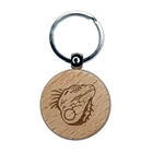 Spiny Green Iguana Lizard Head Engraved Wood Round Keychain Tag Charm