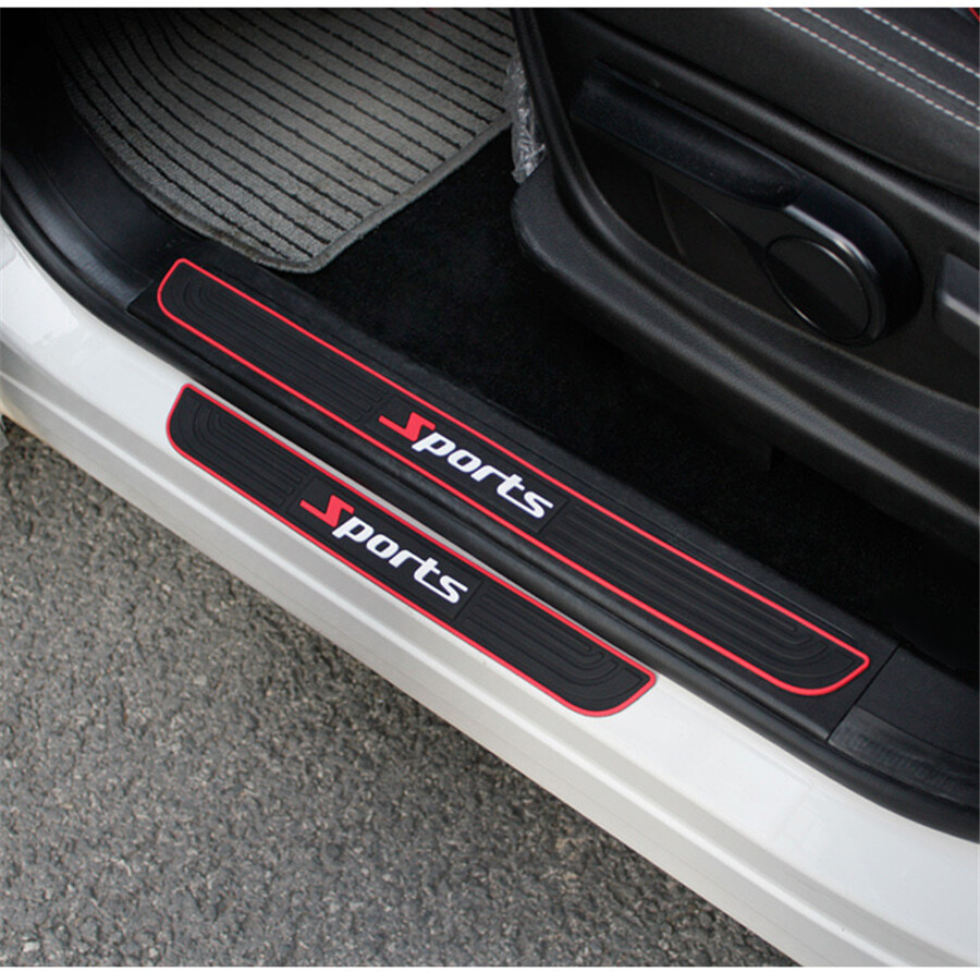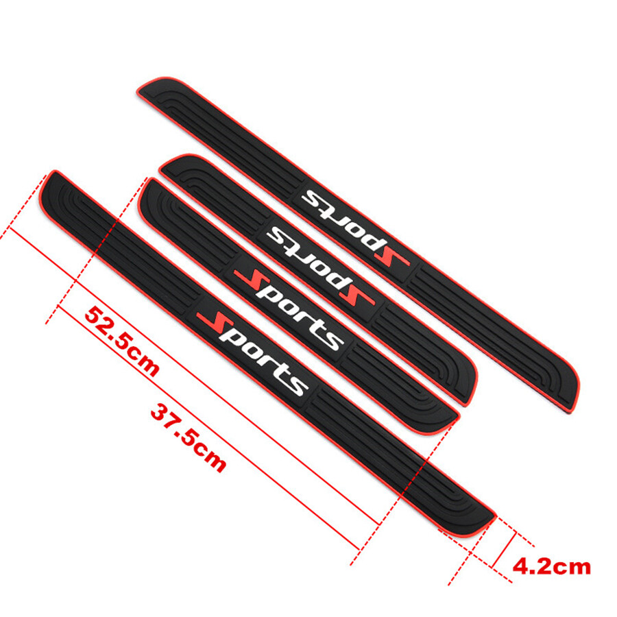 Product Description Sport Door Sill Guard Decal Entry Protector Rubber Sticker Scuff Plate Cover 100% Brand New and High Quality , Never Used or Installed Material :Rubber Size Long : 52.5CM/21"(L) x 4.2CM/1.7" (W) Size Short : 37.5CM/15"(L) x 4.2CM/1.7" (W) Color : Black Easy installation, with Double sided Adhesive Tape on Back Features: Flexible, Scratch Resistant, Waterproof Car Fitment : Universal Please check the size before you purchase to make sure it fits. Package:2pcs front + 2pcs re ar Door Scuff Sill Cover