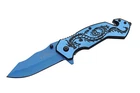 Spring-Assist Folding Knife | Rite Edge Blue/Black Dragon Steel Blade Rescue EDC RITE EDGE SPRING-ASSISTED FOLDING KNIFE 4.5" CLOSED 3.5" BLUE STAINLESS-STEEL BLADE 3D PRINTED DRAGON ON HANDLE ALUMINUM HANDLE GLASS BREAKER SEAT BELT CUTTER NOTE: This knife is NOT an automatic switchblade/push-button knife; it is spring-assisted, which means that the blade is deployed by using the thumb or finger stud located on the blade itself.