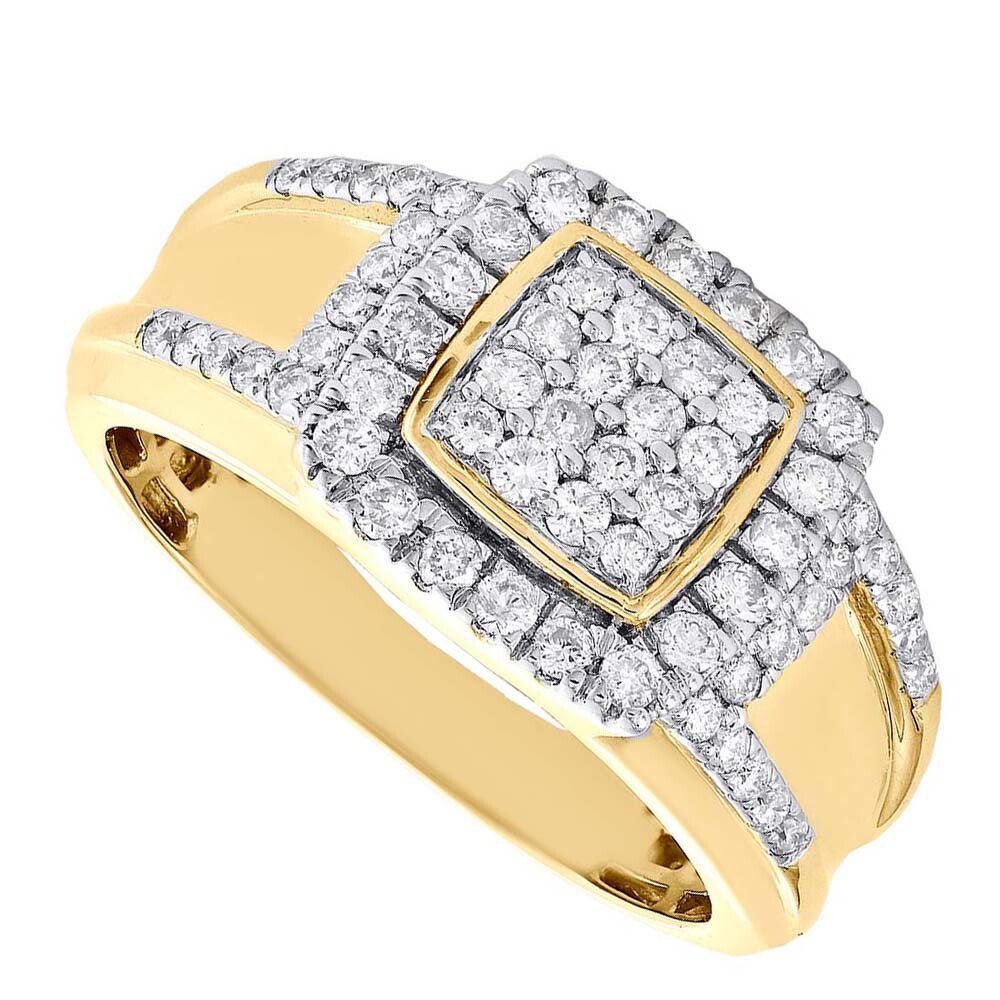 $ 71.541.10 Ct DEW Genuine Moissanite 14K Yellow Gold Fn Wide Statement Pinky Mens Ring