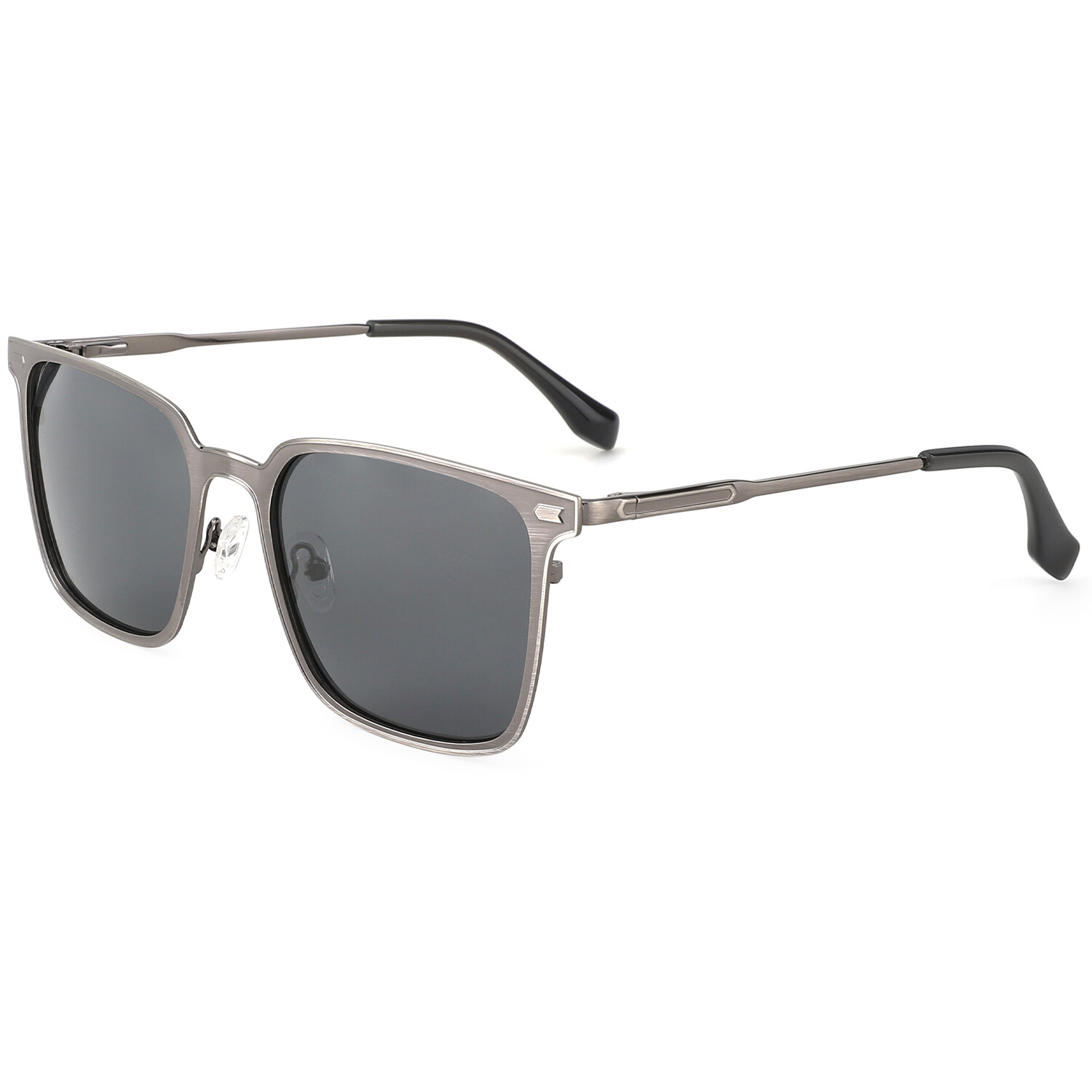 SPECIFICATIONS Block 100% UVA / UVB / UV400 wavelengths : Yes Polarized lenses : Yes Wrap & Angle : Low Rim: Full Rim Shape: Square Material: Metal FRAME SIZE Lens Width: 55 mm Bridge: 19 mm Temple Length: 143 mm