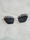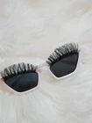 Elevate your retro look with these square cat eye sunglasses with lashes. The white frame provides a clean and modern touch, while the black lenses add a chic and mysterious vibe. These sunglasses are perfect for women who love the cat eye style and want to make a statement.The lashes on the frame give these sunglasses a unique twist that will catch everyone's attention. Whether you're lounging by the pool or strolling through the city, these sunglasses are an essential accessory for any outfit. Get ready to turn heads with these square cat eye sunglasses! Square cat eye trendy sunglasses with fake eyelashes. Frame Color: White Product Measurements: Frame Width:74mm, Frame Height:36mm, Nose Pads Width:21mm, Temple Length:134mm.(Manual measurement, there may be 1-3 mm deviation)