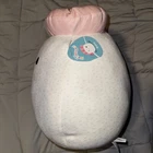 The product is a 14-inch Squishmallows plush featuring a design of a shrimp sushi with a winky eye. This particular plush is named Keina and is part of the Squishmallows collection. Perfect for anyone who loves cute and unique stuffed animals, this Squishmallows plush adds a fun and whimsical touch to any collection. Made by Squishmallows, the manufacturer part number for this product is SQK2795.
