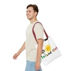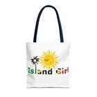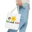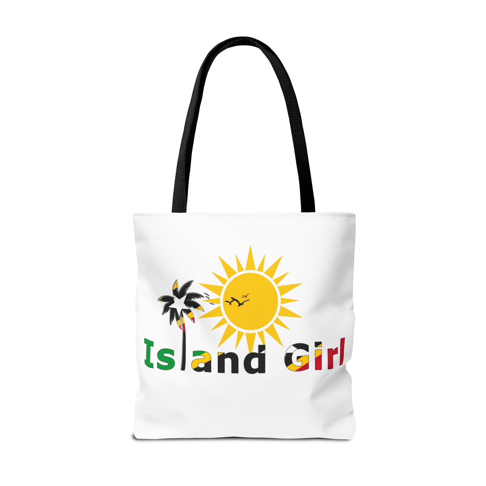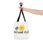 Represent St. Kitts with this Island Girl tote bag. Available in 3 sizes to add both functionality and style, these tote bags come with multiple handle colors to match your designs. Made with spun polyester, these bags feature double-stitched seams, cotton webbing straps, and nonwoven laminate lining for high-end durability. Made with 100% polyester, a medium-weight fabric (6.49 oz/yd² (200 g/m²)) that is highly durable and perfect for everyday use. .: 5 color handle options .: All tote bags come with a non-woven laminate inside, cotton handle, and are available in 3 sizes (1x large storage compartment)