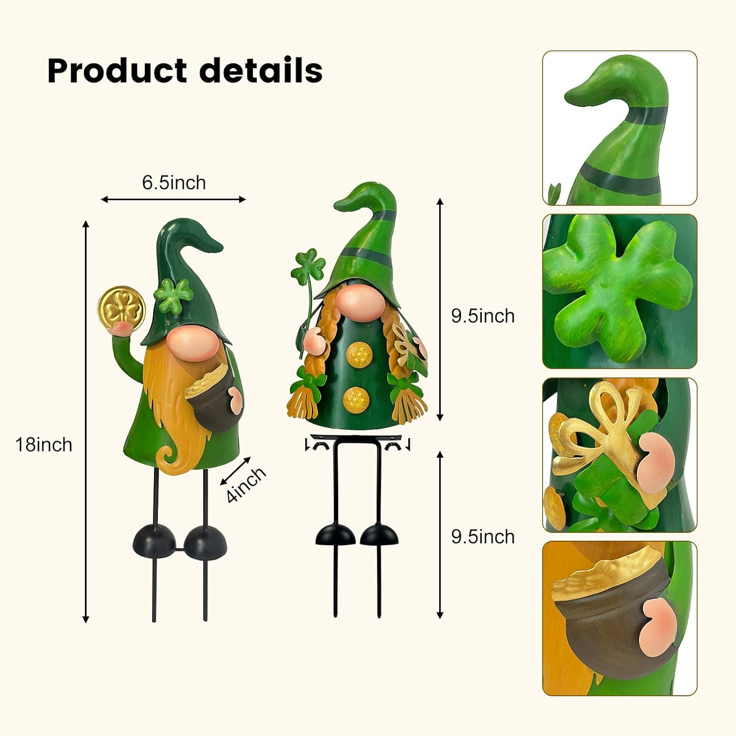 Menu Other Items Feedbacks About Us Contact Us Add To Favorites St Patricks Day Decorations, 18 Inch St Patricks Day Gnomes Outdoor Decor, 2Pc Metal Gnomes Figurine with Green Shamrock, Leprechaun Irish Saint Patrick'S Decor for Home Garden Lawn Party Yard Patio Lucky Metal Yard Art: The green gnomes wear hats adorned with lucky shamrock. The boy gnome holds a golden coin and gold coin jar, narrating a golden legend of wealth, prosperity, and luck. The girl green elf holding shamrock and gift box, warmly invites you to join this enchanting St Patrick's Day wonderland St Patrick's Day Decorations: Bring the enchantment of St. Patrick's Day to your outdoor space with charming gnome stakes, spread the luck & joy of St. Patrick's Day throughout your garden. These whimsical gnome stakes are a perfect addition to any celebration, add your yard a sense of Irish touch Festive Outdoor Decor:The Irish gnome lawn decoration is made of sturdy metal with vibrant colors, waterproof and rainy weather resistant,These Irish garden yard art are ideal for decorating yards, driveways, and hallways at St. Patricks Day Spring Garden Decor:This Irish metal yard art are perfect for any places you want, especially outdoor decorations, such as lawn, yard, balcony, garden, entryway, parties and so on, adding so much fun for your St. Patrick's Day Perfect Holiday Gifts:Unique and heartwarming, these gnome garden decor are the ideal choice for a St. Patrick's Day gift for your special someone. This whimsical and thoughtful gift will bring joy and happiness to your loved ones. Product description Unique Garden Decor Add to Cart Add to Cart Add to Cart Add to Cart Add to Cart Add to Cart Customer Reviews 4.7 out of 5 stars 347 4.6 out of 5 stars 190 4.7 out of 5 stars 347 4.7 out of 5 stars 347 4.7 out of 5 stars 216 4.7 out of 5 stars 216 4.7 out of 5 stars 216 Price $26.97 $ 26 . 97 — $13.52 $ 13 . 52 $30.27 $ 30 . 27 $31.99 $ 31 . 99 $32.79 $ 32 . 79 $31.99 $ 31 . 99 Material Metal Metal Metal Metal Metal Metal Metal Waterproof ✔ ✔ ✔ ✔ ✔ ✔ ✔ Indoor & Outdoor ✔ ✔ ✔ ✔ ✔ ✔ ✔ With solar light ✘ ✘ ✔ ✔ ✘ ✘ ✘ Dimensions 18" H 18" H 18" H 18" H 18" H 15" H 15" H Item Specification Item model number Holiday Style Art Deco Number of Items 1 Mounting Type Floor Mount Color Green&glod Product Dimensions 4"D x 7.5"W x 18"H Material Metal Item Weight 2.66 pounds Batteries required No Theme Holidays Recommended Uses For Product Outdoor FREE SHIPPING We are always working hard to ensure your package arrives as soon as possible. Please understand that some factors like weather, high postal traffic, and the performance of shipping companies are outside of our control. We offer free shipping to the lower 48 states. We do not accept P.O. Boxes. Please provide a physical address. If you have a problem or question regarding your transaction please contact us immediately. We will work with you to resolve any problem you may have. Thank you