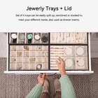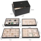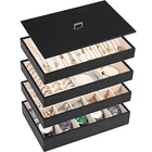 This set of 4 stackable jewelry organizer trays. Made of high-quality PU leather with a lid, these trays are perfect for drawer inserts to keep your earrings, necklaces, rings, watches, and bracelets neatly organized and easily accessible. Features: 5 in 1 Jewelry Holder: Whole size:11 x 7.1 x 6.38 inches, include 10 hooks tray for necklaces; 24 grids tray for earrings,studs,cuffs; 9 ring rolls + 4 big grids(removable) tray for rings bracelets , deeper tray with 10 slots for watch or sunglasses. You can visually see all of your precious belongs, makes selection easier,while being space savvy! These trays can be used alone or combined.Create your own jewelry box with a variety of colors and styles. DIY Considerate Details: This jewelry storage case comes with 4 stackable trays and removable compartments create large capacity and different layout. 3 trays with removal baffles can adjust grid to meet different needs and keep all types of jewelry organized, neatly, beautifully displayed.No longer losing your bling. Protection & Trendy Looking: Jewelry organizer case constructed with sturdy wood board and elegant synthetic PU/leather clad, which is durable, attractive and easy to clean with a damp cloth. The bottom and inside of each jewelry tray is made of soft and anti-tarnish beaded flannel keeps your jewelry well against dust, fingerprints, scratches, damages. Versatile Tray with Lid: The set of 4 jewelry organizer can be easily split up, combined or stacked to meet your personalized storage needs for men women.Stacks and doesn’t slide, it is a breeze to pack and sit beautifully on your dresser or armoire as a jewelry case, and also can be used as a jewelry drawer inserts. In addition, it is great to display earrings, necklaces, bracelets, rings, brooches, pins, watches in the jewelry store,showcase. Great Gift: Our vintage jewelry storage box is an exquisite decoration as well as a good collection tool. Whether you are treating yourself or giving a gift to your girlfriend, wife, mother or other loves for Valentine's Day, Birthday, Mothers' day, Christmas, Anniversary Day, or Wedding. Our decent and multifunction jewelry watch showcase is a ideal gift choice. Package Includes: 1 x Jewelry Organizer Listing and template services provided by inkFrog