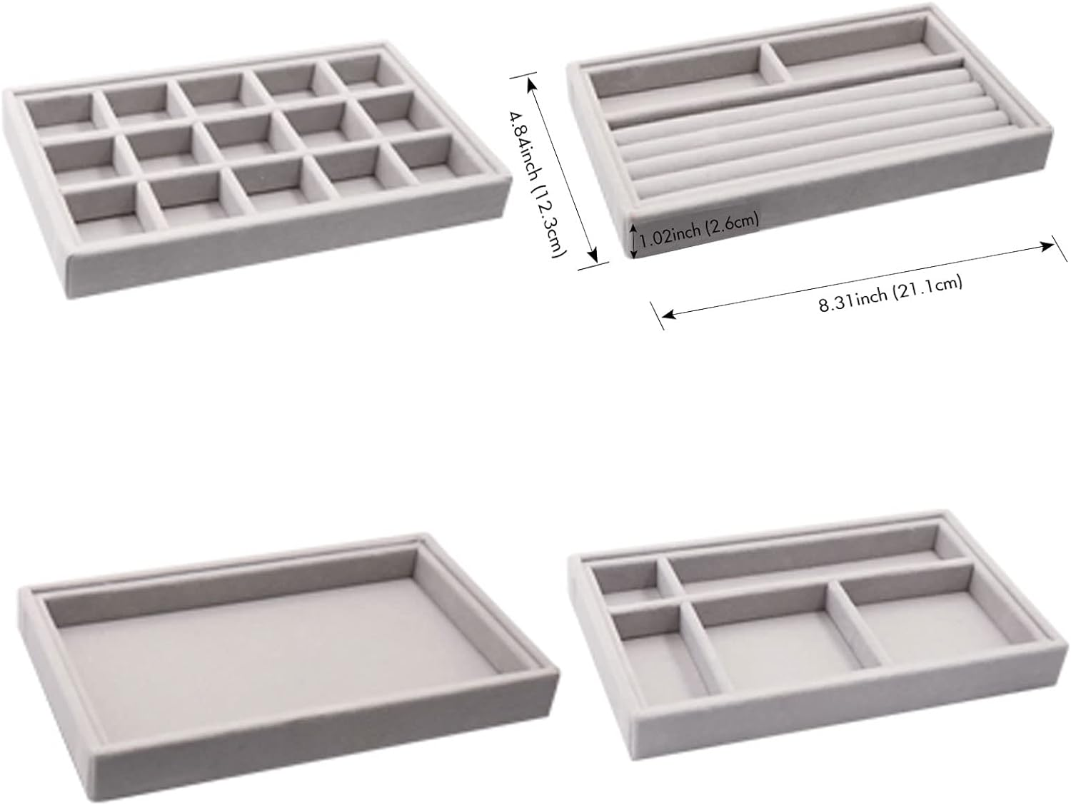 Menu Other Items Feedbacks About Us Contact Us Add To Favorites Jewelry Organizer Trays,Earring Holder Tray Stackable Velvet Drawer Organizer Tray for Necklace,Ring,Bracelet Brooch Watch,Jewelry Storage Display Case Insert for Women Girls Set of 4 (Gray) SET OF 4: The jewelry trays set includes 15-Compartment Tray (1 pc), Rings Display Tray (1 pc) , NecklaceBracelets Tray (1 pc) ,1-Compartment Tray (1 pc) for watch,earrings, rings, bracelets, necklaces. HIGH QUALITY MATERIAL: Constructed with sturdy composite board wrapped in premium velvet fabric with removable compartment dividers, the organizer trays are durable and attractive, protecting your jewelry from any kind of damage. EASY STORAGE: It fits perfectly on top of your vanity table to store your jewelry as a jewelry case, and also can be used as a jewelry drawer insert.You can adjust the size and number of compartments by removing or adding the dividers to meet your personalized storage needs. VERSATILE: Each tray measures 8.4" x 4.8" x 1.1" (LxWxH) and is ideal for storing and displaying your jewelry at home or in the store.suitable to store earrings, necklaces, bracelets, rings, brooches, pins, watches and more. SATISFACTION GUARANTEE: We are full of confidence in the quality of our products and we are adhering to the principle of 100% customer satisfaction, so if you have any questions, please feel free to contact us, we will be happy to serve you. Product Description Velvet Stackable Jewelry Trays for Drawer Set of 4 stackable velvet jewelry trays, made of high quality materials, helps you to store and display your jewelry, protecting your jewelry from any kind of damage. Best Gift for Her A perfect gift for your girlfriend, wife, mother, daughter, friends and so on. It is also a good idea of Valentine's Day Gift, Birthday Gift, Mother's Day Gift, Christmas's Gift, Wedding Gift, Engagement Gift, Anniversary Gift and etc. Product Size(LxWxH):Each tray: 8.4" x 4.8" x 1.1" Stackable Jewelry Trays Organizer 1.Protect the jewelry from dust, tangle, damage, oxidation, extends your jewelry's longevity. 2.More storage space with function division. 3.Used as a decorative furniture, adding more colors to your room. 4.Find your matching pieces quickly and efficiently, saving your time. Stackable Jewelry Trays Organizer 1.Protect the jewelry from dust, tangle, damage, oxidation, extends your jewelry's longevity. 2.More storage space with function division. 3.Used as a decorative furniture, adding more colors to your room. 4.Find your matching pieces quickly and efficiently, saving your time. Stackable Jewelry Trays Organizer 1.Protect the jewelry from dust, tangle, damage, oxidation, extends your jewelry's longevity. 2.More storage space with function division. 3.Used as a decorative furniture, adding more colors to your room. 4.Find your matching pieces quickly and efficiently, saving your time. Stackable Jewelry Trays Organizer 1.Protect the jewelry from dust, tangle, damage, oxidation, extends your jewelry's longevity. 2.More storage space with function division. 3.Used as a decorative furniture, adding more colors to your room. 4.Find your matching pieces quickly and efficiently, saving your time. 1* Rings Display Tray (Jewelries Not Included) 1* 15-Compartment Tray (Jewelries Not Included) 1* Necklace Bracelets Tray (Jewelries Not Included) 1* 1-Compartment Tray (Jewelries Not Included) Double Deck Trays Constructed with sturdy composite board wrapped in premium velvet fabric with removable compartment dividers, the organizer trays are durable and attractive, protecting your jewelry from any kind of damage. DIY the Storage Space The unique design allows you to adjust the size and number of compartments in the jewelry tray to meet your individual storage needs. Stackable Jewelry Display Trays Made from premium quality material, your collection will not only look beautiful but be neatly organized and at the ready when you are Item Specification Style Box Number of Items 1 Closure Type no closure Country of Origin China Warranty Description 1 Batteries Included? No Jewelry Storage Type Jewelry Tray Batteries Required? No Number of Compartments 25 Special Feature Stackable Product Dimensions 4.8"D x 8.4"W x 1.1"H Material Composite Board, Velvet Finish Type Polished Item Package Quantity 1 Item Weight 1 pounds Finish Polished Occasion Mother's Day, Engagement, Wedding, Birthday Special Features Stackable Target Audience Women Color Gray Inner Material Velvet Global Trade Identification Number 00782855929025 Shape Rectangular Recommended Uses For Product Ring Size 21.1*12.3*2.6cm Number Of Pieces 4 Dimensions Shipping Returns Additional Info Product Dimensions: 8.4 "h x 4.8 "h x 1.1 "h. Weight: 1.0 lb Fast shipping is very important for us. Our standard shipping service is FREE. Your order will be shipped within 1-3 business days upon full payment received. Most items are delivered within 3-5 business days, however, please allow 3-10 business days. We are shipping only to USA. We only ship to the confirmed Paypal address. We reserve the right to cancel any order for any reason at any time. We are not responsible for undeliverable addresses. We offer a 30 day return policy from checkout winning date. Your satisfaction is guaranteed! If for any reason you are unhappy with your item, just return it within 30 days for a full refund, minus shipping cost. Please contact us prior to initiating a return so that we can issue you a refund authorization. Items defective upon receipt must be packaged in their retail packaging as if new and returned with a detailed description of the problem. Return shipping fees are not refundable. We reserve the right to decline any returns if the above guidelines are not followed. All of our items, unless otherwise stated, will only run on 120 volts. Please check to make sure your country complies with these specifications. If you have a problem or question regarding your transaction please contact us before leaving