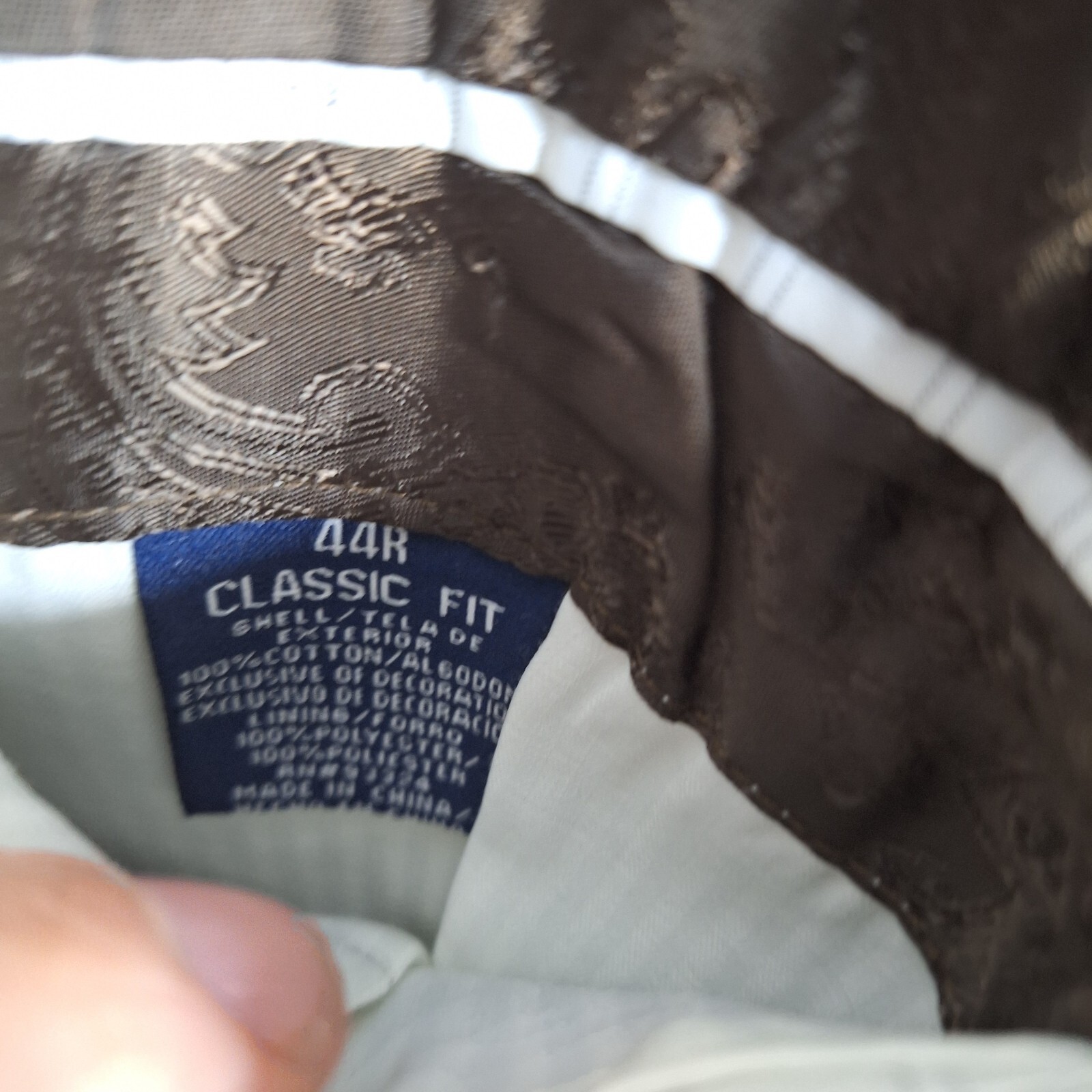 Quality used condition. Please check out the measurements before buying to ensure a perfect fit. Shirt Size on Label 44R Shoulder- Hem 31.00'' Shoulder- Shoulder 20.00'' Shoulder- Wrist 26.00'' Armpit- Armpit 23.00'' Top button 22.00'' Everything ships within a day. Spot cleaned according to manufacturer's recommendations. Has a chance of wrinkling in the mail. Feel free to message me with any questions. Thank you very much. 1/30/25