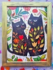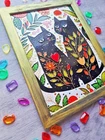 READY TO SHIP!!! In front of us is a stained glass work of art depicting two cats in love, demonstrating their happiness to everyone. The painting is painted on transparent plexiglass using stained glass paints, which gives it a special depth and saturation of colors. The Art Deco and Modern styles are clearly visible in the depiction of the two main characters, whose images are created with incredible precision and love of detail. Cute cats look alive and real, their eyes glow with love and tenderness. However, despite the fact that cats are in the spotlight, they are not the only characters in the picture. Life is in full swing around them: flowers are blooming, green plants are blooming, the colors of the surrounding world are raging ... The artist masterfully uses various techniques to convey all the subtleties of the surrounding world: acrylic rhinestones, multicolored beads as mosaic elements, the play of light and shadow. Seals, trapped by their feelings, do not notice anyone around them. They are completely immersed in their own world, where there is only them and their love. They tenderly embrace each other in such a way that it is not clear where one ends and the other begins. This pair of seals symbolizes passion, tenderness and sincerity in the relationship of two lovers. The painting is a harmonious combination of various artistic styles, techniques and materials. It is not only a wonderful example of stained glass art, but also a metaphor for the power of love that can transform the world around you and make it brighter and more beautiful. It can be a great gift for a wedding or an anniversary. Ready for hanging. Subscribe to my store so you don't miss any new items)) Size: 35 x 24 cm We ship our products all over the world, packing them securely and carefully :)