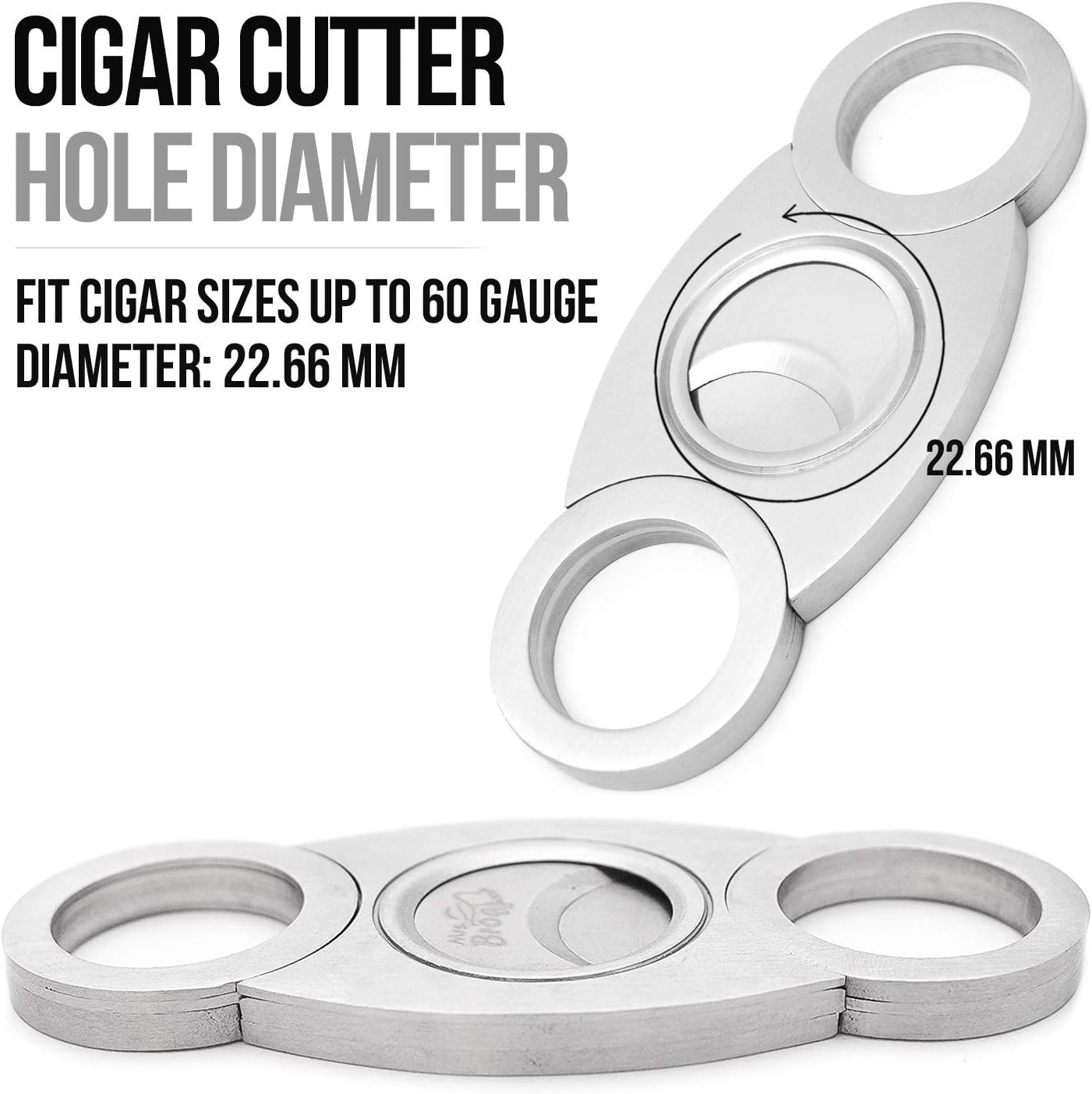 This cutter is a game-changer! The double blades slice through cigars with incredible precision every time. Love the smooth stainless steel feel and the included leather pouch makes it feel premium. Perfect weight and balance in hand. Highly recommend!