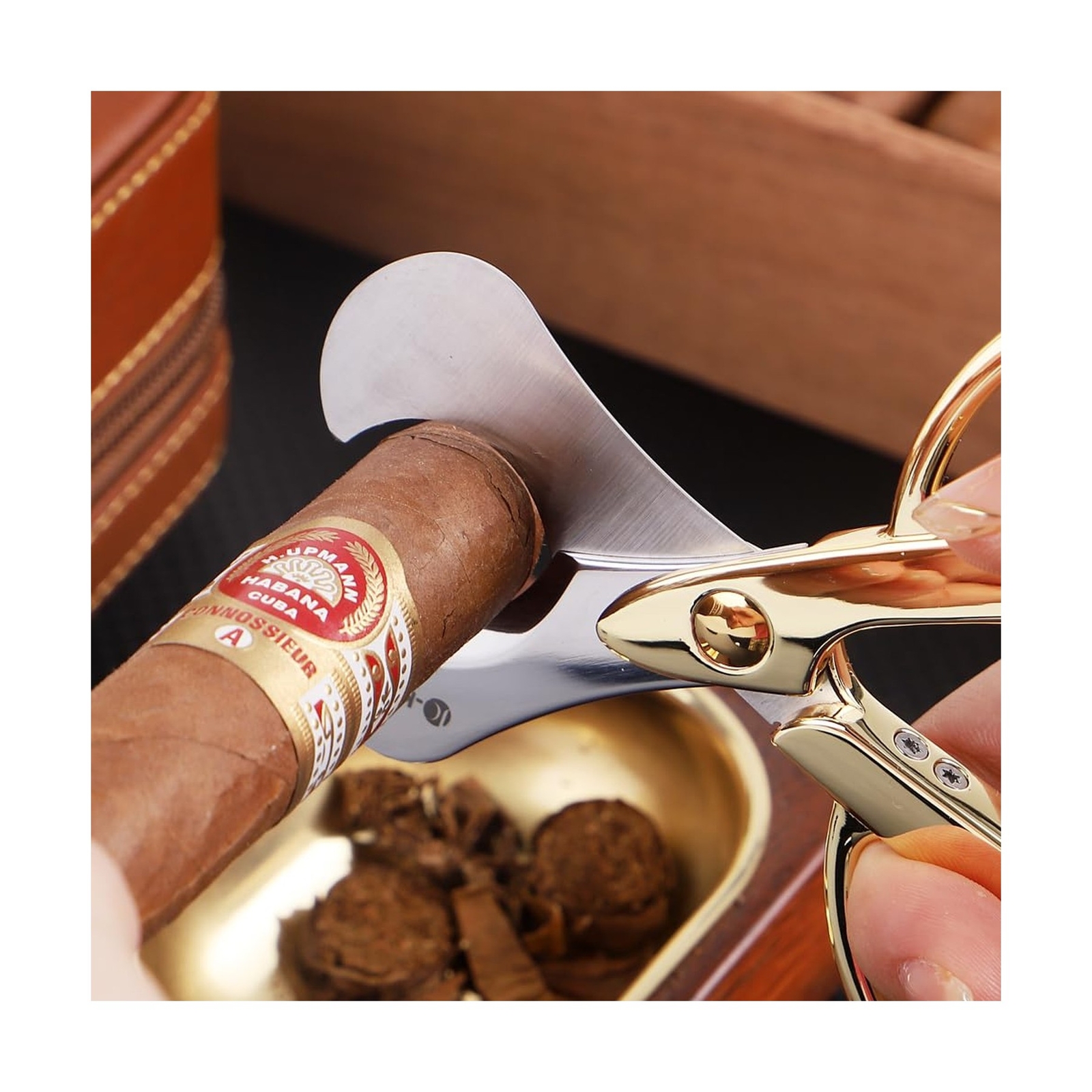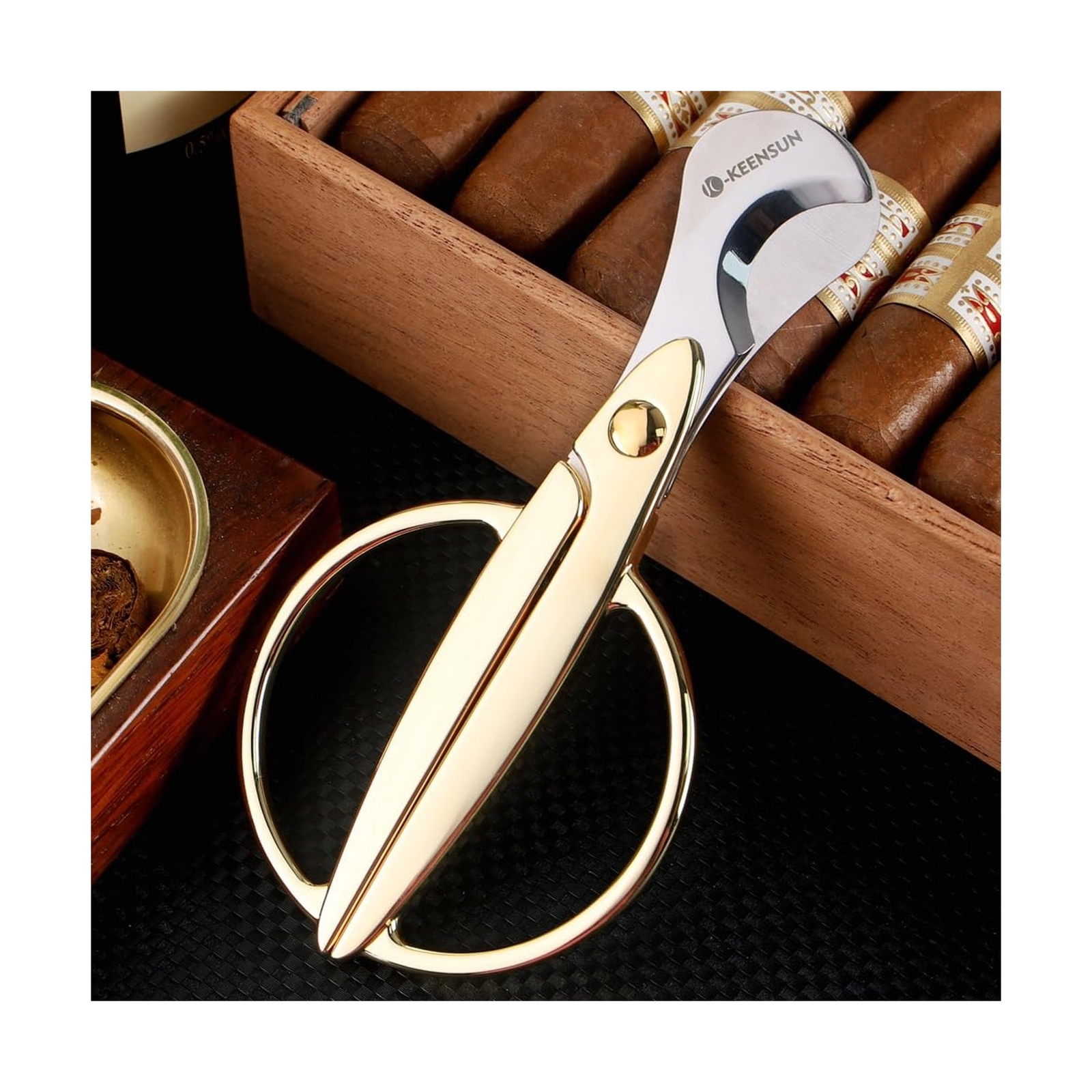 Brand New Cigar Scissors Cutter, Stainless Steel Guillotine Double Blade Straight Cut Scissors (Gold) with Leather Case Cigar Accessories for Cigars(2.75" Handle Width) Manufacturer model: CM-C345-G Perfect Design: The cigar scisors cutter size is 5.51"x 2.75"x 0.15"and the weight is 0.22lb. High Quality: The cigar scissor is made of Stainless Steel, which has a high degree of non-slip and corrosion resistance. The guillotine double blade are sharp, hard and rust-proof.The precisely designed blade angle provides the best cutting depth, cutting cigars easily and smoothly without damaging the cigar. Easy to carry: The cigar scissor has a compact shape,easy to carry and use.Perfect for business occasions, out-of-home use, home use and other important occasions. Best Idea for Gift: The cigar scissors cutter can be used as an ideal gift for boyfriends, husbands, fathers on anniversaries, Christmas, birthdays, Halloween, Father's Day, Thanksgiving Day, Valentine's Day or other special days. If you are looking for a meaningful and unique gift for someone who likes to smoke cigars, then our cigar cutter must be a perfect choice! Packaging and Service: The Cigar Scissors Cutter is packaged in a gift box with leather case , which not only protects the product, but also considers the appearance of convenience as a gift.We are committed to ensuring that our customers are 100% satisfied. If you have any questions, please feel free to contact us.We will give you a satisfactory answer within working hours. Description High Quality Cigar Scissors Cutter Shipping and Handling Please allow 5-7 business days for the package to arrive, regardless of buyer location within the US. We will provide an online tracking number to you once the item has been shipped. It may take a few business days for our automated system to process the tracking number onto eBay. However, this will not affect the shipping times. Return Policy All our products are brand new and sealed. All items qualify for returns within 30 days of receipt. Feedback We take our reputation seriously. If you have any questions or concerns, please contact us and we will respond back to your message within 24 hours.