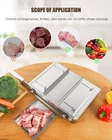 product parameter Product name: slicer chopper Product number: KD0288 Fuselage weight: 4355g Product Material: 4cr13/430 Stainless Steel/Aluminum Alloy Product Size: 475mm x 285mm x 100mm Blade length: 240mm DOUBLE THICK BLADE--Forged and polished with 4Cr13 steel at high temperature, the blades are sharp and duable, making cutting much more powerful. Our slicer can persist in processing medicinal materials without damaging the blade, smooth surface and is easy to clean, can be washed in water and mild detergent directly. ALMOST SUB FOR YOUR IDEAL THICKNESS--2 sizes of screws are included in the package for adjusting the cutting thickness. Long screws for cutting the thicness of 0-57mm, and the short screws for slicing the thickness of 0-8mm. Whether you want very thin potato chips or thick corn cubes, our cutting machine can satisfy you well. SPECIAL GIFT FOR OUR CUSTOMER--In addition to the ribs chopper itself, you will also get a food storage shovel. The cut food will fall into the storage shovel, making your food and desktop clean and tidy. BE WELL HELD IN ITS PLACE ON TABLE-- Balance support foot can make it stable on the table, and the carving roll and hard object fuselage can also grasp the table steadily. This meat cutter can work well without rollover, avoiding hurting people, meeting a variety of cutting requirements. LABOR SAVING--Our manual slicing machine can easily process hard vegetables, whole chicken, meat with small ribs and bones, frozen meat. It CANNOT cut beef ribs, trotters, large ribs and bones or cow bones. **For food with bones or materials with greater hardness, before cutting, you can sharpen the blade, please place the hard ingredients near the cutter head and cut with an instant force!