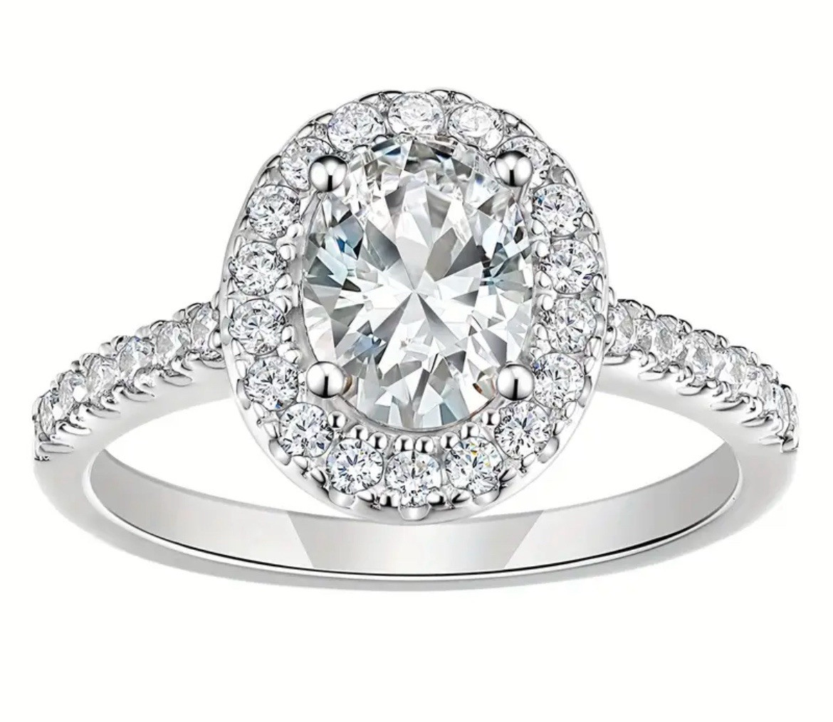 This stainless steel ladies ring features an oval rhinestone with excellent cut grade, set in a solitaire with accents style. The elegant design is perfect for engagements, weddings, or anniversaries. The ring is silver in color, with a band width of 5mm and a ring size of 7. It is a great gift option for women, crafted for women with nice quality materials.