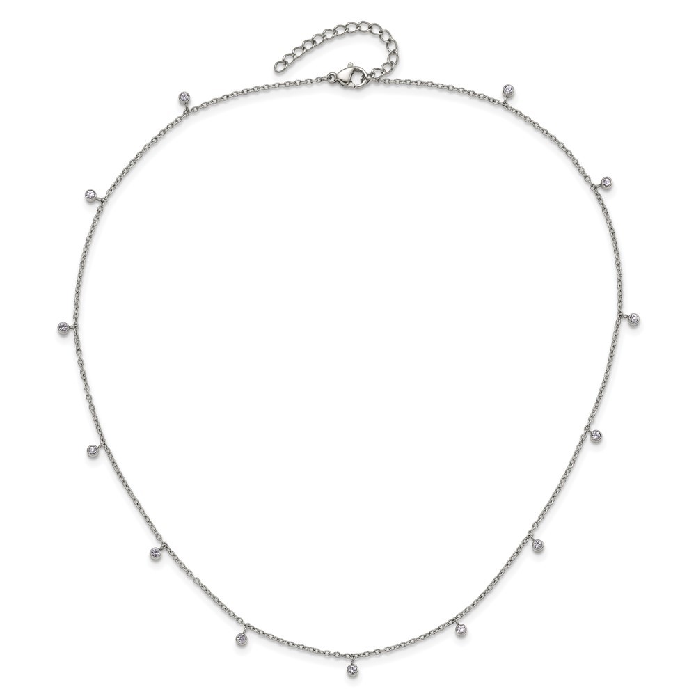 Finish:Polished|Stone Type_1:Crystal|Stone Color_1:White|Stone Quantity_1:13|Length of Item:17.5 in|Chain Length:17.5 in|Chain Type:Cable|Chain Width:1.5 mm|Clasp /Connector:Lobster (Fancy)|Extender Length:2 in|Material: Primary:Stainless Steel|Item Weight U/M:gm|Width of Item:1.5 mm|Packaging:Gift Boxed|Product Type:Jewelry|Jewelry Type:Necklaces|Sold By Unit:Each|Necklace Type:Fancy Necklace|Gender:Women's|Material: Primary - Color:White|Number of Elements:13|Stone Creation Method_1:Synthetic All weights and measurements are approximate and may vary slightly from the listed information. Welcome to diamond_6720 Payments We accept all Ebay approved payment. Please sent the payment to us within 8 days after the auction has ended, or you will have unpaid case auto open by eBay. Shipping Policy We will ship all items within 1 business days of purchase during the work week (M-F) excluding holidays. If you order on Friday, your order will be shipped the following business day. Tracking will be provided when it becomes available. We will only ship to a PayPal Verified Address. Please make sure your address is current and correct. If the information does not match, your order may be canceled. Buyers are responsible for all customs, duties and taxes for your respective countries. Delivery times for International Shipping will vary. California Buyers Pay 9.0% Tax on all orders. case auto open by eBay. Return Policy & Exchange Returns or Exchange are accepted. Buyer must contact us within 30 days after the item is received. Item must be returned in unworn and resalable condition. We will only issue a refund for the purchase price, excluding any shipping fees. If we are at fault, we will provide a full refund. Buyer is responsible for all return shipping costs. BUYERS FEEDBACK If you have any concerns regarding your purchase, please contact us via eBay Message, we assure you that a satisfactory resolution will be reached. Your feedback is very important to us Do remember to give us 5 star rating(*****) if you are satisfied with our product & service .
