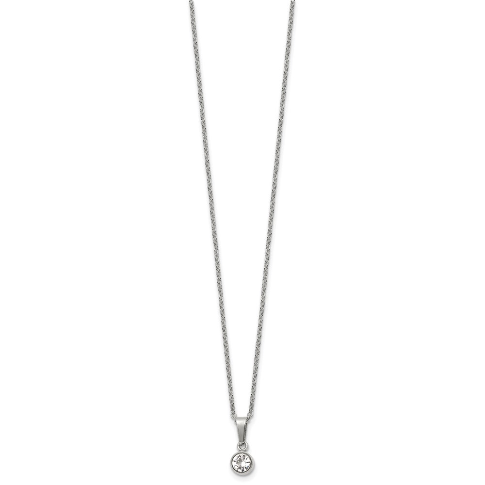 Finish:Polished|Stone Type_1:Crystal|Stone Color_1:White|Stone Quantity_1:1|Length of Item:16 in|Chain Length:16 in|Chain Type:Cable|Chain Width:1.5 mm|Charm/Element Length:9 mm|Charm/Element Width:6 mm|Clasp /Connector:Lobster (Fancy)|Extender Length:2 in|Material: Primary:Stainless Steel|Item Weight U/M:gm|Width of Item:6 mm|Packaging:Gift Boxed|Product Type:Jewelry|Jewelry Type:Necklaces|Sold By Unit:Each|Necklace Type:Fancy Necklace|Pendant/Charm Type:Fancy|Gender:Women's|Material: Primary - Color:White|Number of Elements:1|Stone Creation Method_1:Synthetic All weights and measurements are approximate and may vary slightly from the listed information. Welcome to diamond_6720 Payments We accept all Ebay approved payment. Please sent the payment to us within 8 days after the auction has ended, or you will have unpaid case auto open by eBay. Shipping Policy We will ship all items within 1 business days of purchase during the work week (M-F) excluding holidays. If you order on Friday, your order will be shipped the following business day. Tracking will be provided when it becomes available. We will only ship to a PayPal Verified Address. Please make sure your address is current and correct. If the information does not match, your order may be canceled. Buyers are responsible for all customs, duties and taxes for your respective countries. Delivery times for International Shipping will vary. California Buyers Pay 9.0% Tax on all orders. case auto open by eBay. Return Policy & Exchange Returns or Exchange are accepted. Buyer must contact us within 30 days after the item is received. Item must be returned in unworn and resalable condition. We will only issue a refund for the purchase price, excluding any shipping fees. If we are at fault, we will provide a full refund. Buyer is responsible for all return shipping costs. BUYERS FEEDBACK If you have any concerns regarding your purchase, please contact us via eBay Message, we assure you that a satisfactory resolution will be reached. Your feedback is very important to us Do remember to give us 5 star rating(*****) if you are satisfied with our product & service .