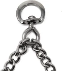 The Stainless Steel Training collar is one of the most recognizable and popular names in obedience training tools. A safe and effective alternative to choker collars, it puts even pressure around the neck, about every half inch, pinching the skin in a band. This collar does not apply direct pressure to the trachea, so you can train your dog with little or no tugging, jerking, or pulling. The addition of a center plate connector allows the middle link to be configured symmetrically, enabling the links to tighten in the same direction. Made of high quality German stainless steel, the size of this collar can be adjusted by adding or removing the links individually. Features: interlocking links, each link equipped with two blunt links slips over dog's head for easy on, easy off slightly beveled tips easy to increase or decrease in size Made of high quality stainless steel Additional links sold separately. Sizing instructions: collar should fit snuggly just below the dog's ears, measure the circumference of dog's neck and add 2". Stainless Steel Collar. This model come with Swivel for leash attachment: Size Medium 3.2mm x 23 inches long (overall collar length)