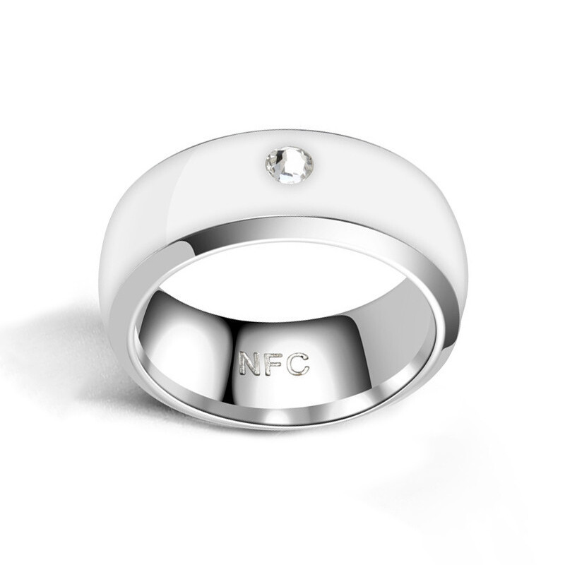 Multifunctional Rings Jewelry Stainless Steel Rings Smart Rings NFC Rings Smart Description: 100% Brand New and high quality. NFC ring,multi-functional smart wearable access control stainless steel ring,European and American style,fashionable and simple.A smart ring is a fashionable wearable electronic product that can connect with a smartphone via Near Field Communication (NFC) to perform function execution and data sharing.Designed with high water level water resistance,it can be used without any power supply.Embedded with an NFC chip,it can only be connected to NFC-enabled smartphones.Place the smart ring in the NFC area of the smartphone,perform:screen unlock,application lock unlock,application quick launch,business card and URL information sending and reading,etc. Features: Material:Stainless Steel Color:white,black Size:as the picture shows (1 inch = 25.4mm or 1mm = 0.0393 inch) Package Includes: 1PC NFC Ring Notice: 1. Please allow 2-3% error due to manual measurement. Please make sure you do not mind before you bid. 2. The colors may have different as the difference display,please understand.