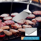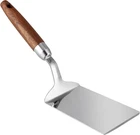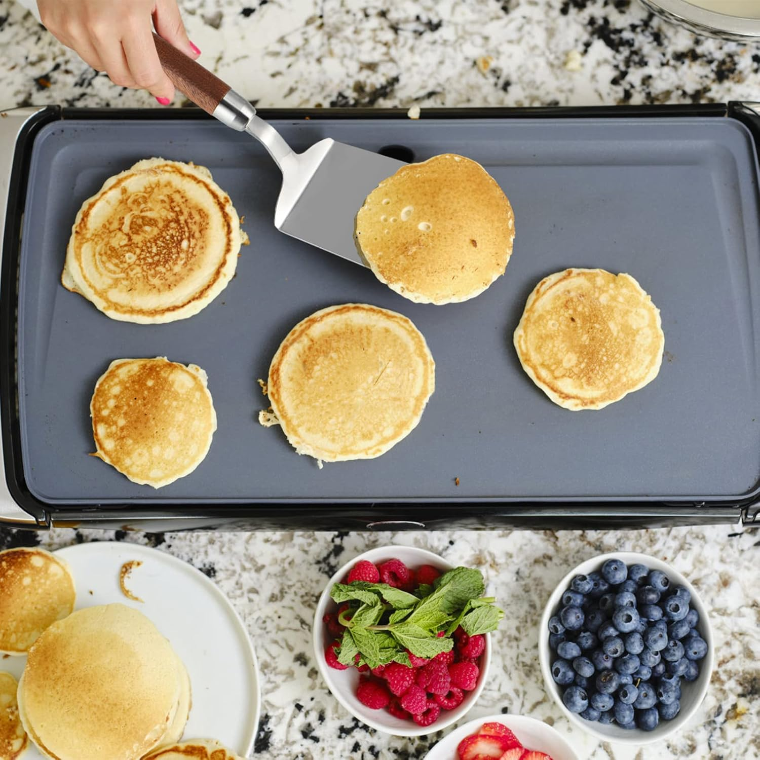HIGH QUALITY: This spatula is well constructed by premium stainless steel blade and solid sapele wood handle, which is sturdy to flip, smash or mix up food for everyday cooking NONSTICK DESIGN: The stainless steel blade in polished finish is sleek as mirror, nonstick and easy to clean; And the 4.6" x 3.3" wide surface is perfect for flipping pancake, egg, fish, steak, burger, omelet, bread, pizza or cake BEVELED EDGE DESIGN: Front edge of the blade specially in bevel design, makes it much easier to turn or chop food; also great to scrape bits off the pan after cooking, perfect for your cast iron skillet, flat top grill, BBQ griddle or oven use COMFORTABLE HANDLE: The wooden handle is polished and ergonomic designed, offers comfortable grip and protects your hand from heat. (There's a hanging hole for easy storage) A GREAT GIFT: It'll make a great gift for your home chef or friends who fond of cooking Product description It's suitable for many cooking methods and fits very comfortable in hand. Perfect for your cast iron skillet, flat top grill, BBQ griddle or oven use. Flipping pancake Smashing burger Chopping sausage Scrambling egg Stainless Steel Spatula Blade Made of food-grade stainless steel and polished finish is sleek as mirror, nonstick and easy to clean. Front edge of the blade specially in bevel design, makes it much easier to turn or chop food. Strong Connection Strongly attached to the handle, not easy to fall off. And the connection part in extra thickness makes it sturdy to flip, smash or mix up food for everyday cooking. Solid Sapele Wood Handle The wooden handle is polished and ergonomic designed, offers comfortable grip and protects your hand from heat. There's a hanging hole for saving storage space.