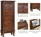 Standing Jewelry Armoire Cabinet Storage Chest, Makeup Mirror and Top Divided Storage Organizer, Large Standing Jewelry Armoire with 7 Drawers, 2 Swing Doors, 12 Necklace Hooks Product Details Brand: HOMGX Product Dimensions: 39"D x 13"W x 19"H Color: As the Picture Shows Mounting Type: Freestanding Room Type: Living Room, Bedroom Brand: HOMGX Product Dimensions: 39"D x 13"W x 19"H Color: As the Picture Shows Mounting Type: Freestanding Room Type: Living Room, Bedroom Special Feature: Mirror Product Care Instructions: Wipe with Dry Cloth Assembly Required: Yes Model Name: HOMGX Standing Jewelry Armoire Cabinet Storage Chest Item Weight: 32 Pounds Size: 39"D x 13"W x 19"H (7 Drawers) Number of Pieces: 1 UPC: 649874569024 Manufacturer: HOMGX Global Trade Identification Number: 24 Item Weight: 32 pounds Country of Origin: USA Item model number: Jewelry Armoire Finish types: Polished Batteries required: No Included Components: 1 x Cabinet, 1 x Instruction manual Sturdy Cabinet and Easy-to-Clean High Feet - The jewellery cabinet is made of thick and heavy-duty MDF material. The cabinet is of great wooden textured surface. The feet of the cabinet is not direct landing design but with a certain height. With this height, it is also easy to clean in daily life. 1 Top Flip Mirror and 4 Compartments for Organized Display - There is a partitioned storage area on the top of the cabinet, a small compartment with soft lining for ring storage, and other 3 partitions can be used for various small objects to be placed. There is a lid at the top to prevent the accumulation of dust and with this lid, the cabinet looks beautiful. The lid has a make-up mirror, and the height of the cabinet is 39 inches, which is suitable for most people. 7 Drawers To Keep Your Items In Order - This jewellery cabinet has 7 drawers. The height of the 1st to 4th drawers is the same. The 4 drawers are spaced and designed for various small accessories and watches. The 5th to 7th floor height is 4. 5 inches, suitable for a slightly larger item, and the storage space is sufficient to meet your daily storage needs, keeping your items neat and orderly. 12 Heavy Duty Hooks And 2 Space-Saving Side Doors - Considering that girls have a lot of accessories like necklaces, scarves to be hung, and if all put in drawers, it will be messy and easy to entangle. We have additionally added space-saving side door opening storage design with 12 vintage style heavy duty rust-proof hooks to prevent jewellery entanglement, besides, we have put ropes to prevent jewellery from falling when door opens. Your jewellery be better protected and placed. Well-Built Jewellery Cabinet with Stably Shaped Feet - No matter the hooks or the door handle, for this cabinet we all use very heavy-duty rust-free hardware with a little retro feel, beautiful and practical. The workmanship of the cabinet is superb. You can see that every corner is smooth and nicely polished to prevent bump injury, also with beautiful arc shaped feet and engraving cabinet surface. All these time-consuming and costly designs make this cabinet beautiful. Description This is one of our most popular jewellery cabinets which is perfect in quality and most cost-effective model. It has been popular with many customers by its antique style and large storage space, especially with 7 drawers and 2 side doors. It is the best friend for yourself or your beloved one as an Christmas or birthday gift. Features 7 drawers with large capacity, and the storage space is sufficient to meet your daily storage needs, keeping your items neat and orderly A lid at the top to prevent the accumulation of dust and with this lid, it also has a make-up mirror There is a partitioned storage area on the top of the cabinet to store jewellery of different shapes 2 space-saving side door with 12 vintage style heavy duty rust-proof hooks, and there are 2 ropes to prevent jewellery from falling when door opens Double security strap on the back can be fixed to the wall to prevent the cabinets from toppling over The jewellery cabinet is made of thick and heavy-duty MDF material and it is of great wooden textured surface The feet of the cabinet is not direct landing design but with a certain height, so it is also easy to clean in daily life Specifications Colour: As the picture shows Material: MDF With Wood Surface Mirror Material: Real Glass Net Weight: Overall Size: 15'' (L) x 10'' (W) x 39'' (H) Drawer Size: 9. 5'' (W) x 7. 5'' (D) Package Includes: 1 x Jewellery Cabinet 1 x User's Manual