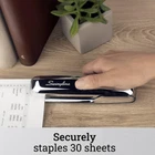 The renowned 747 Stapler is built with all-metal construction for dependability and strength. This sleek, Chrome stapler adds style to any desktop. A specialized inner rail delivers reliable, jam-resistant stapling. Stapler holds a strip of up to 210 staples. A handy low-staple indicator alerts you when it's time for a refill. This stapler secures up to 30 sheets of paper and works best with standard sized S.F. 4 Premium Staples. While generally designed for desktop use, the 747 stapler is also great for tacking and pinning. It's easy to tack papers onto a bulletin board, telephone pole, or other vertical surface—simply open the stapler 180 degrees by pressing a release at the bottom, and you're ready to tack. This stapler also easily produces pointed staples for temporary pinning. Reverse the anvil by pushing and rotating the adjustable knob at the bottom and press. backs this stapler with a 100% performance guarantee and a limited lifetime warranty. ICONIC METAL STAPLER – Sleek Chrome stapler with all-metal construction is designed for durability. A specially crafted inner rail delivers jam-resistant, accurate stapling you can count on. DESIGNED FOR DESKTOP – The 747 stapler is intended for desktop use. It holds a full strip of 210 staples. The helpful low-staple indicator lets you know when it's time for a refill. SECURES 30 SHEETS – This high-performing stapler fastens up to 30 sheets of paper and works best with standard S.F. 4 Premium Staples. Standard staples have 1/4” length legs. TACKING & PINNING – Tack papers to bulletin boards with ease: unlatch the stapler and you're ready. The stapler can also produce pointed staples for temporary pinning: just reverse the anvil. BUILT TO LAST – stands behind this classy stapler with a 100% performance guarantee and a limited lifetime warranty.