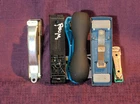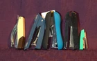 DOODLE DAN'S DEALS Stapler Lot Blue Swingline 5-¼” Long 1-⅝” wide 2-¼” Tall Tan Bostitch 5” Long 1” Wide 1-¾” Tall Black Boston Model 55 5-¼” Long 1-¼” Wide 2” Tall Turquoise Walmart (New) 5-¼” Long 1-½” Wide 2-¾” Tall Green Swingline Jet 50 + 2 boxes of Staples 2-¾” Long ½” Wide 1” Tall