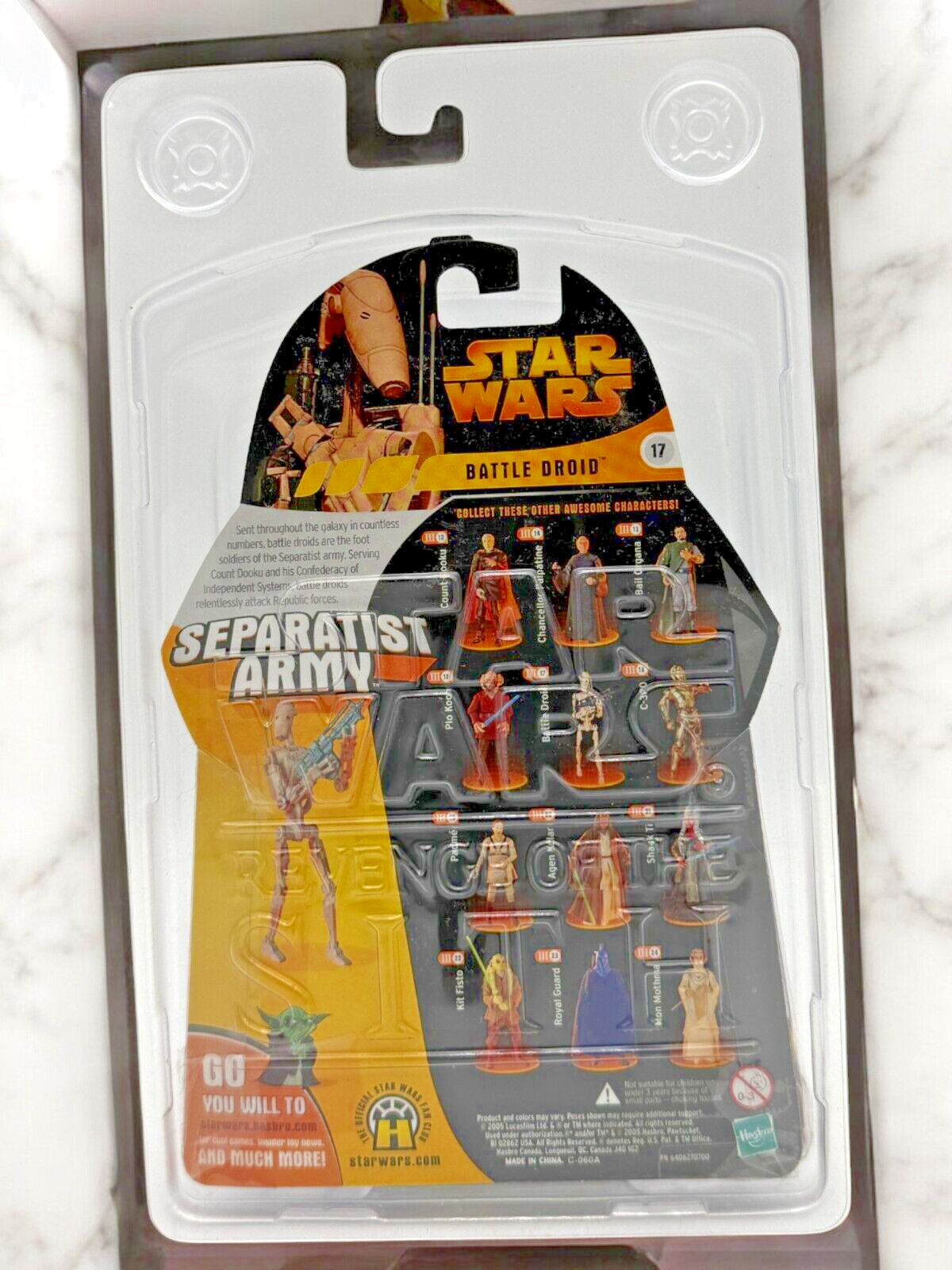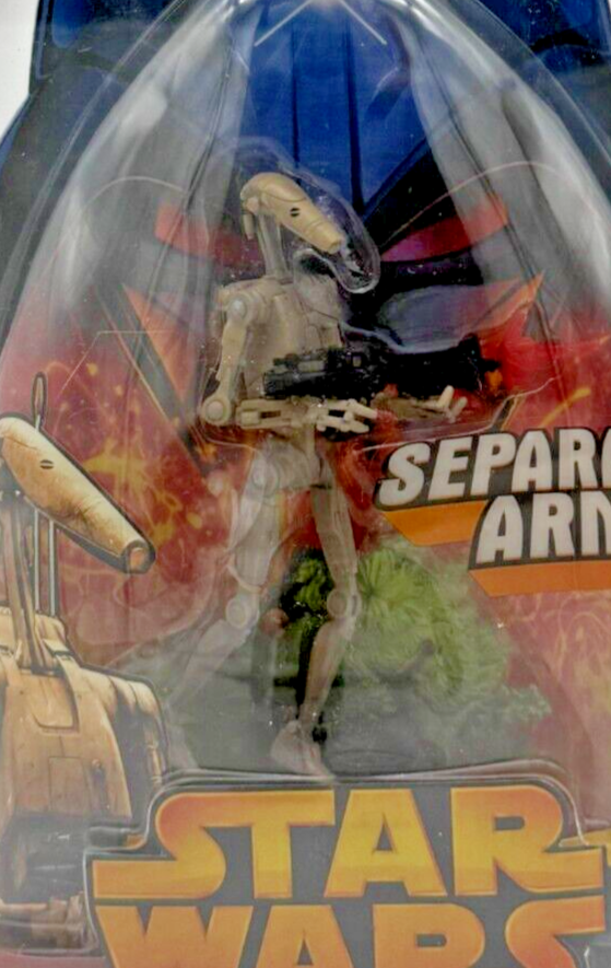 Star Wars Revenge of the Sith Separatist Army Battle Droid Action Figure Bring the Star Wars saga to life with this Separatist Army Battle Droid action figure from the Revenge of the Sith series! Representing the iconic foot soldiers of the Separatist Army, this collectible captures the essence of these relentless warriors. Manufacturer: Hasbro (2005) Series: Star Wars Revenge of the Sith Character: Separatist Army Battle Droid Condition: Near Mint Special Features: Original unopened packaging with detailed figure design This Battle Droid action figure is a perfect addition for collectors and Star Wars fans. Its near-mint condition and intricate detailing make it an exceptional piece for display or as a thoughtful gift. Explore more amazing Star Wars collectibles at A&M Collectibles !