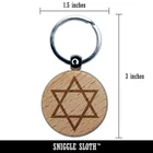 Star of David Jewish Engraved Wood Round Keychain Tag Charm