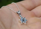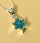 Star of David / Magen David Pendant & 18" Box Necklace 925 Sterling Silver with Eilat Stone This solid and beautifully crafted pendant is reversible. One side features a cut of authentic Eilat stone deeply embedded in a sterling silver Star of David (Magen David) frame, while the exquisite design on the reverse side features a tiny Star of David nestled within a larger one. The Star of David is the classic Jewish decorative motif, said to have been carved on King David’s shield. The Eilat Stone is Israel's national stone, found near the Red Sea in the copper mines of King Solomon. In deep shades of green, turquoise and blue, it is said to inspire a host of positive spiritual energies. Suitable for both men and women. Matching sterling silver necklace included and available in different sizes. A lovely gift idea for Jewish festivals or birthdays, for yourself or for someone special. Pendant size (H x W): 0.55 x 0.5 inch / 1.4 x 1.2cm Necklace size: 18 inch / 45 cm Click here for more Star of David Necklaces in store Feel Free to contact us with any question Liorel, Art from Israel Find a special gift Unique art works & gifts, handmade by Israeli artists Vintage antiques & collectibles from the early days of Israel Ordering & Shipping Information 100% customer satisfaction guaranteed. We are a small family business working on low costs, we work from the heart and love to make people happy :) If you're not satisfied - we're not satisfied! Always wish to bring good quality, nice and affordable gifts from the Holy Land of Israel, and deliver to your home, in minimum time and effort.. But sometimes delays can happen, shipping services can be slower than usual.. so please your patience.. we do our best and recommend to place the order one month (or more) ahead of time. Thank you for support! God Bless and Shalom from Israel, yours Liorel Worldwide Shipping from Israel. All orders are insured for loss or damage. Wrapping and packing are done with great care, to ensure safe arrival of the goods. Combined Shipping: Order More - Pay Less. We are happy to combine shipping costs as possible, it saves us and you and the environment too! If you think of purchasing more items from store - please add all items to the shopping cart, the shipping price combines automatically for each additional item. Shipping price is based on weight and includes the cost of Insurance, handling and packaging, packing materials. Shipping Options: Standard, Express and Sea mail. For Express or Sea mail please contact us for a price quote. Estimated Delivery Time: By Standard Mail: 15-25 business days (3-5 weeks) . Express mail: 5-8 business days. Sea Mail: 1.5-2 months. This is the average delivery time to most places in the world. Please check the estimated delivery time to your country before purchase (it is written on the item page). It is best to order ahead of time, as to some countries shipping can take longer than usual. We appreciate your help and patience. Shipping Enquiries and Delays: Shipping depends on the final location and the mail services of each country, and delivery times might take up to 35 business days, or even more during holidays or to distant locations. Please contact us if you haven’t received your order within 4 weeks, by marking “I have a question about item”, and we will solve the problem to your full satisfaction. Remember, once we put the parcel in the post office we depend on the mail services to do their job efficiently and fast. Returns and other issues after arrival of goods : We always care for your full satisfaction. Please contact us via eBay messages before processing a return, as most situations can be solved faster without going through the process. When contacting us please mark "I have a question about item". Handling time can take up to 7 Business days. For some handcrafted items or custom orders it may take more, as stated in the shipping section on item page. Payment: All major credit cards are accepted with Paypal . Payment must be made within two weeks . If you need more time please let us know in advance. For more information please see our Ordering & Shipping Page Thank you for visiting! Similar words ; Jewish jewelry , judaica jewelry, Israel Israeli jewelry, Jewish pendant, Sterling Silver Jewelry ,Sterling Silver Necklace, Magen David, Star of David pendant Necklace, chai , Mogen Dovid, seal of Solomon, Kabbalah, the state of Israel, Love Ahava necklace, pomegranate artisan jewelry, handmade jewelry, handcrafted jewelry , Fine Jewelry ,Medallion , Bible biblical Torah Jewelry ,Pendant , Made in Israel Magen David Star of David, David Shield, Magen Israel Davidstern, Schild Davids, L’étoile de David, maguen david L’étoile de David, hamesh homesh amulet charm evil eye protection good luck home blessing artisan hand made Israel judaica, kamsah, khamsah, kabalistic amulet, kaballah kabala charm, Kabalah talisman