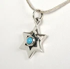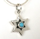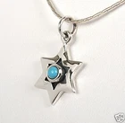 Sterling Silver Star of David Pendant with Turquoise Gemstone Matching 925 Silver Necklace is Included Elegant silver pendant, shaped as a Star of David, or "Magen David" in its Hebrew name (David Shield, protector of Israel), adorned with a beautiful turquoise gemstone embedded in the center. The pendant comes with a matching sterling silver necklace, available in different sizes. Pendant size (H x W): 0.6 x 0.5 inch / 1.5 x 1.3 cm Necklace length: 16.5 inch / 45 cm Other Necklace Sizes are Available, Just Ask Us. Click here for more Kabbalah items in store Feel Free to contact us with any question Liorel, Art from Israel Find a special gift Unique art works & gifts, handmade by Israeli artists Vintage antiques & collectibles from the early days of Israel Ordering & Shipping Information 100% customer satisfaction guaranteed. We are a small family business working on low costs, we work from the heart and love to make people happy :) If you're not satisfied - we're not satisfied! Always wish to bring good quality, nice and affordable gifts from the Holy Land of Israel, and deliver to your home, in minimum time and effort.. But sometimes delays can happen, shipping services can be slower than usual.. so please your patience.. we do our best and recommend to place the order one month (or more) ahead of time. Thank you for support! God Bless and Shalom from Israel, yours Liorel Worldwide Shipping from Israel. All orders are insured for loss or damage. Wrapping and packing are done with great care, to ensure safe arrival of the goods. Combined Shipping: Order More - Pay Less. We are happy to combine shipping costs as possible, it saves us and you and the environment too! If you think of purchasing more items from store - please add all items to the shopping cart, the shipping price combines automatically for each additional item. Shipping price is based on weight and includes the cost of Insurance, handling and packaging, packing materials. Shipping Options: Standard, Express and Sea mail. For Express or Sea mail please contact us for a price quote. Estimated Delivery Time: By Standard Mail: 15-25 business days (3-5 weeks) . Express mail: 5-8 business days. Sea Mail: 1.5-2 months. This is the average delivery time to most places in the world. Please check the estimated delivery time to your country before purchase (it is written on the item page). It is best to order ahead of time, as to some countries shipping can take longer than usual. We appreciate your help and patience. Shipping Enquiries and Delays: Shipping depends on the final location and the mail services of each country, and delivery times might take up to 35 business days, or even more during holidays or to distant locations. Please contact us if you haven’t received your order within 4 weeks, by marking “I have a question about item”, and we will solve the problem to your full satisfaction. Remember, once we put the parcel in the post office we depend on the mail services to do their job efficiently and fast. Returns and other issues after arrival of goods : We always care for your full satisfaction. Please contact us via eBay messages before processing a return, as most situations can be solved faster without going through the process. When contacting us please mark "I have a question about item". Handling time can take up to 7 Business days. For some handcrafted items or custom orders it may take more, as stated in the shipping section on item page. Payment: All major credit cards are accepted with Paypal . Payment must be made within two weeks . If you need more time please let us know in advance. For more information please see our Ordering & Shipping Page Thank you for visiting! Similar words ; Jewish jewelry , judaica jewelry, Israel Israeli jewelry, Jewish pendant, Sterling Silver Jewelry ,Sterling Silver Necklace, Magen David, Star of David pendant Necklace, chai , Mogen Dovid, seal of Solomon, Kabbalah, the state of Israel, Love Ahava necklace, pomegranate artisan jewelry, handmade jewelry, handcrafted jewelry , Fine Jewelry ,Medallion , Bible biblical Torah Jewelry ,Pendant , Made in Israel Magen David Star of David, David Shield, Magen Israel Davidstern, Schild Davids, L’étoile de David, maguen david L’étoile de David, hamesh homesh amulet charm evil eye protection good luck home blessing artisan hand made Israel judaica, kamsah, khamsah, kabalistic amulet, kaballah kabala charm, Kabalah talisman