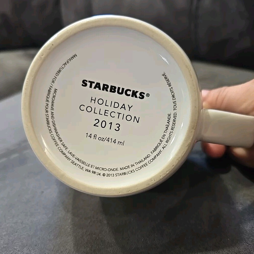 This Starbucks holiday mug is a festive and nostalgic piece for any coffee lover! The 2013 design is charming and vibrant, perfect for sipping your favorite drink. Great quality, holds 14oz, and feels sturdy—definitely a collector's gem. Love the classic Starbucks branding and festive colors. A must-have for fans of their seasonal collections!