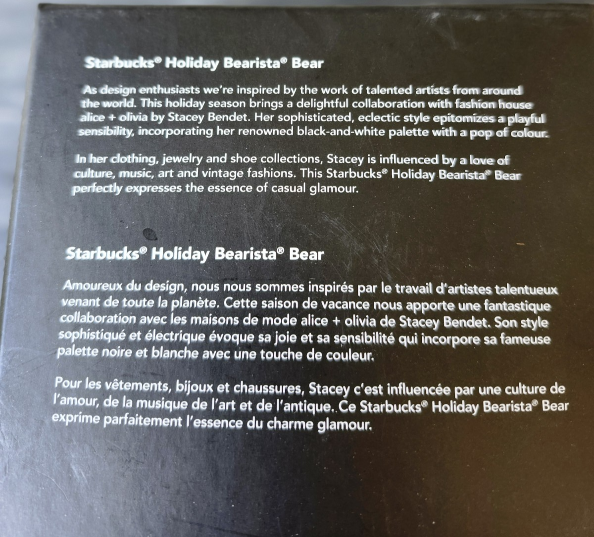 2013 Starbucks Holiday Bearista Bear Alice + Olivia by Stacey Bendet 10 in tall New in box