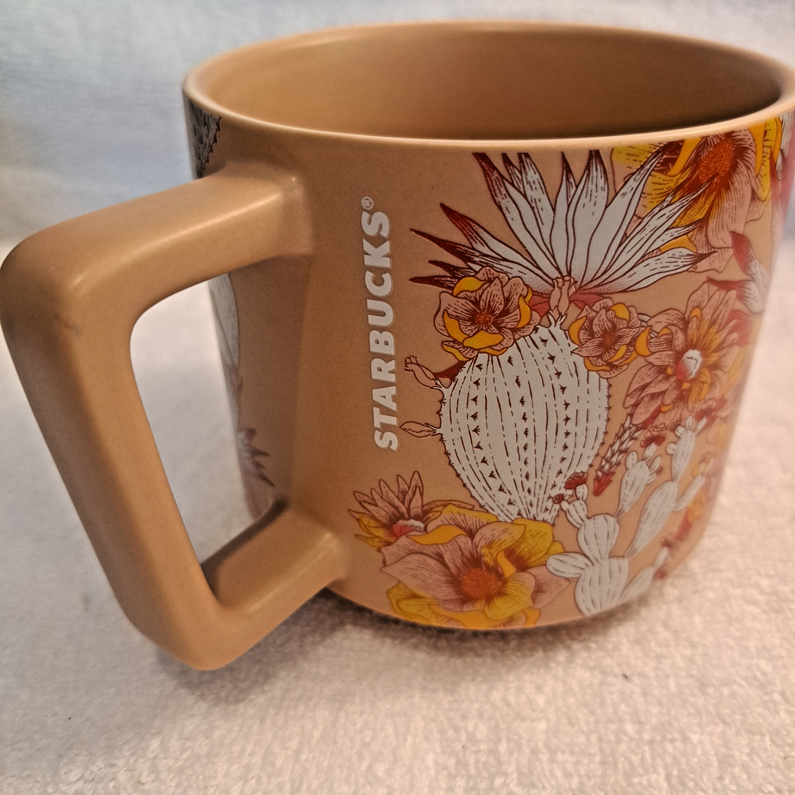 Welcome to my collection of my personal home items. I purchased this coffee cup as new and have never used it. No cracks or chips. Free shipping. The Starbucks 2019 Ceramic tan Pink Cactus 14oz Stackable Mug is a stylish and fun addition to any coffee or tea lover's collection. Made of ceramic with a tan pinkish color, this original Starbucks mug features the iconic coffee & tea theme. With a capacity of 14oz, it is perfect for enjoying your favorite hot beverages. This collectible item was manufactured in China and is a unique piece that showcases the Starbucks brand in a creative way.