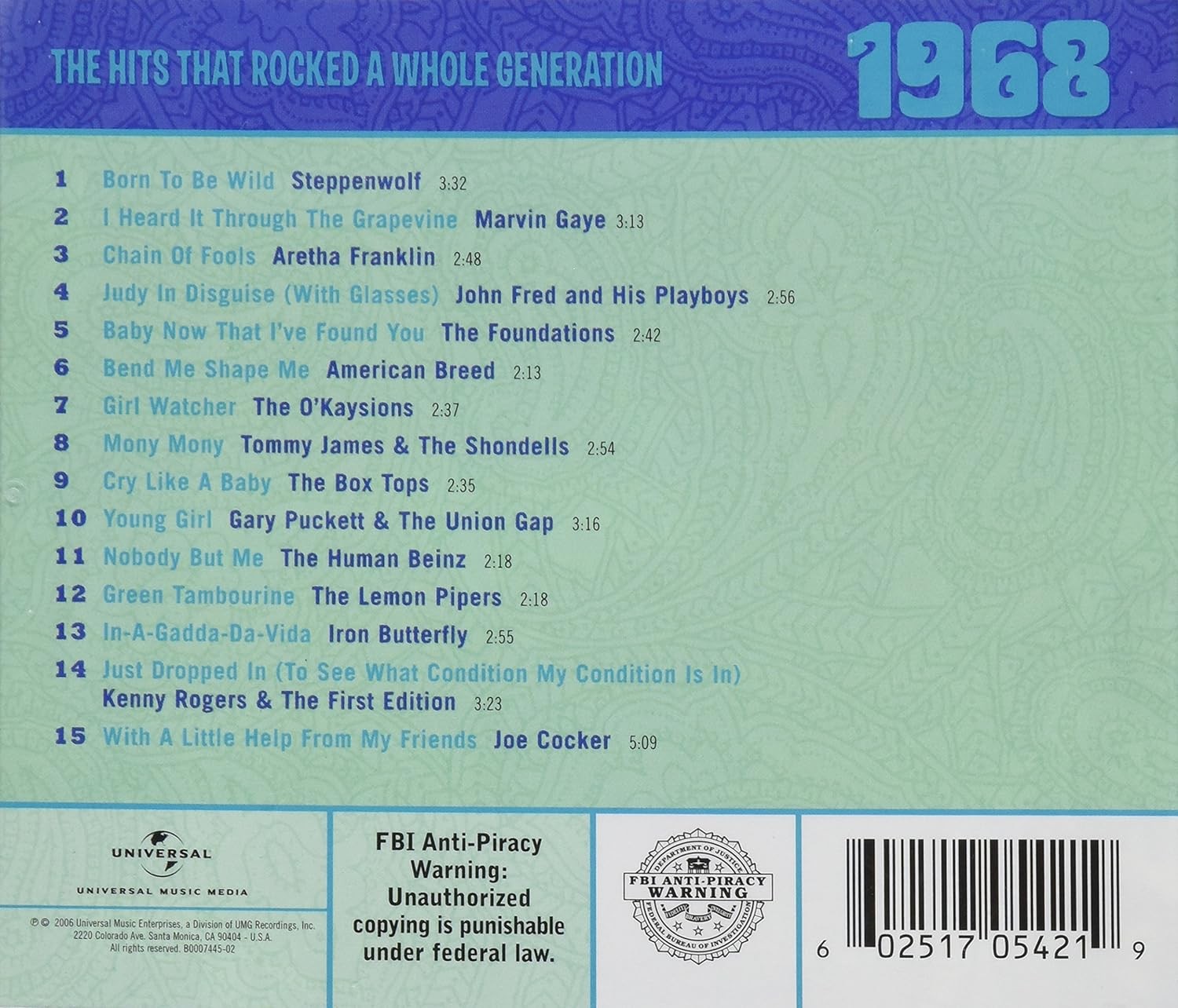 Further Details Title: CLASSIC SIXTIES COLLECTION -1968- Condition: New Artist: Steppenwolf EAN: 0602517054219 Format: CD No Of Discs: 1 Record Label: CD Missing Information? Please contact us if any details are missing and where possible we will add the information to our listing.