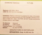 1EA. New PFANSTIEHL 117-D7 DIAMOND REPLACEMENT NEEDLE FOR ADC CARTRIDGES. REPLACES THE FOLLOWING NEEDLES: ADC RQ-3, ADC RQ-4 USED IN THE FOLLOWING CARTRIDGES: ADC Q3, ADC Q4., Used In: ADC RQ-3 cartridge , Hitachi T-44L, Hitachi T-53, Hitachi T53L, Onkyo CP1114A, Onkyo DN-66ST .7 MIL STEREO DIAMOND TIP PLAYS 33 AND 45 RPM RECORDS. 1 to 1.5 grams force Search my store for your needle, cartridge or other turntable accessories. Email me for help. Delivery confirmation in the United States is included in the shipping price. The confirmation number will be sent to the buyer when the item/items ship, usually within 24 hours. Check out my other items !