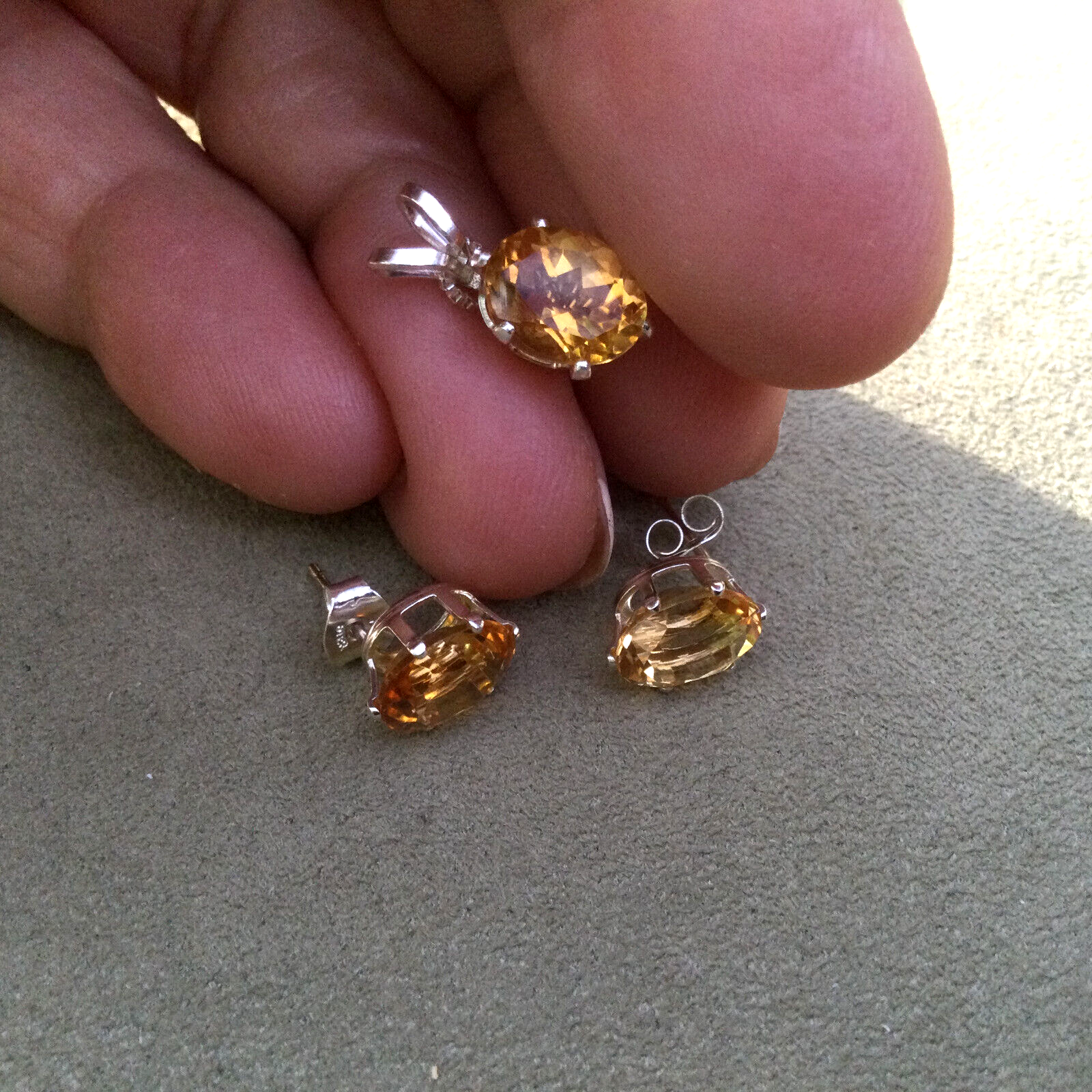 Sterling Silver 18" Box Chain with Pendant and Stud Earrings Set. Oval 8mm x 6mm Citrine. New, never used, great condition. InvN/ES/5/ 22