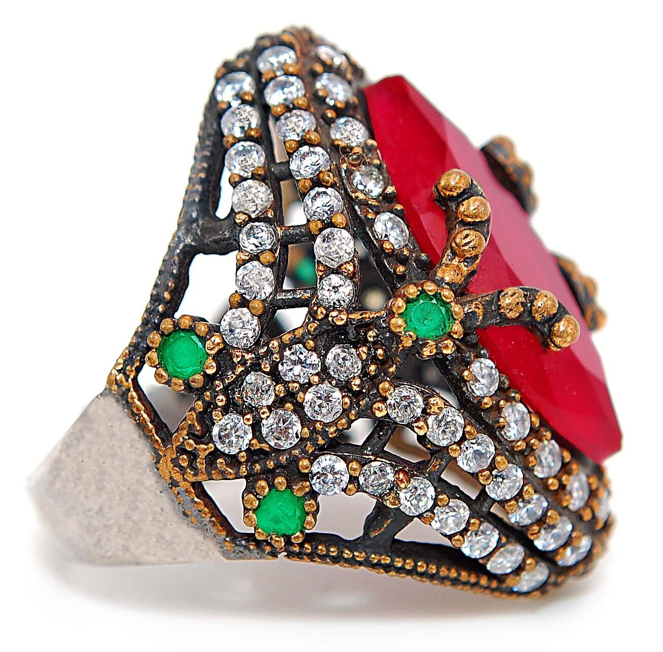 Menu Store FAQ Payment Shipping returns Feedback CONTACT US SHOP BY RING SIZE 4 4.5 5 5.5 6 6.5 7 7.5 8 8.5 9 9.5 10 10.5 11 11.5 All STORE CATEGORIES 99 cent daily deals Auctions Ending Soon New Arrivals Buy it now Rings Pendants Earrings Necklace Bangles & Bracelets POPULAR STONES Aquamarine Ruby Sapphire Pink Sapphire NATURAL GREEN SAPPHIRE Topaz Opal Pearl Amethyst Blue Topaz Kunzite Herkimer Diamond Hand Carved Fossils Citrine Garnet Alexandrite Natural Rough Two-Tone Sterling Silver Store Newsletter Add old-english-silver to your Favorites and receive our e-mail newsletters about new items and special promotions. General Interest Sign Up Gemstone : TREATED RUBY, EMERALD & WHITE TOPAZ Metal : Genuine 925 Solid Sterling Silver Total Carat Wt : 4 Total Gram Wt : 6 Ring Sz : 7 Shipping & Handling