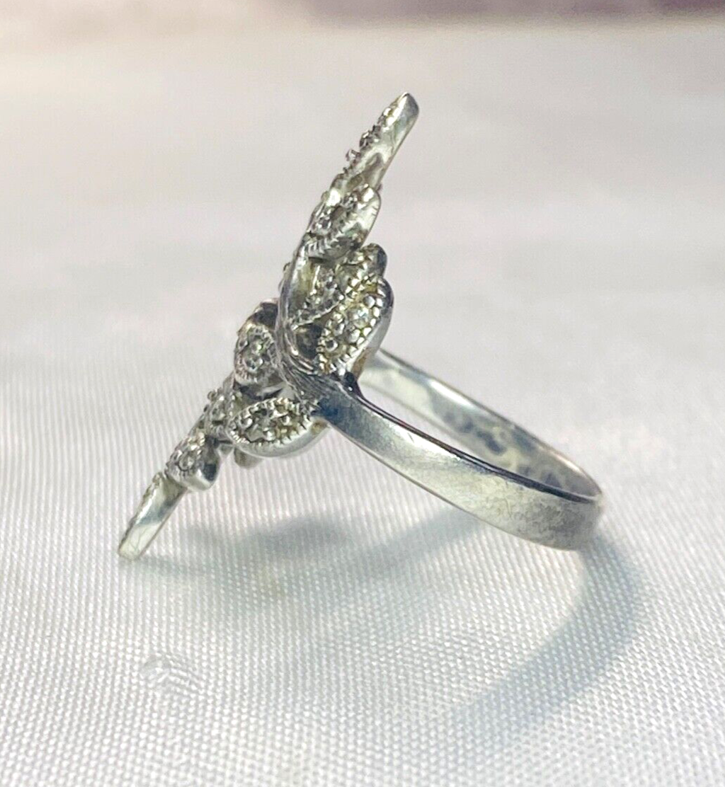Marked: NF 925 Size: 7 Weight: 4.51 grams We do not deep clean items to avoid damage. Most of these items are used. BUY IT NOW: Payments should be made when bought unless arrangements are made. BIDDING INFORMATION Please remember your bid is a contract. High bidder must respond with payment within THREE (3) days of auction ending via Ebay checkout. Non-Pay Alert will be posted on the 4th day after the sale ends if I do not hear from buyer on winning bid notification. Bidding on this item indicates your acceptance of the above and below terms. We HATE posting the above information, but so many people have taken advantage. But we know you aren?t one of them!? NOTE: PLEASE READ OUR DESCRIPTION CAREFULLY AND LOOK AT ALL THE PHOTOS ATTACHED AS THEY ARE PART OF THE DESCRIPTION! Please refer to pictures for flaws. If you have any questions please ask before bidding or purchase. *** No Returns*** If a return is initiated and required by eBay, I will refund money only after receiving item. The refund will exclude any shipping costs incurred by seller. I do combine shipping, please ask for a total Prior to making your payment for the combined shipping discount. All items are sold As-Is. Payments received after Friday 9 am, items will not be shipped until Monday morning. Once I receive positive feedback from you and I know that you are happy with your purchase, positive feedback will be left automatically for you in return. Thanks for looking! Check out my other items:https://www.ebay.com/usr/sazzwithclass