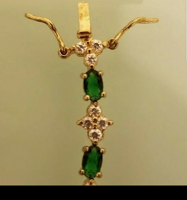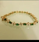 BRACELET - STERLING SILVER 925 CZ TENNIS LINK - GREEN WHITE