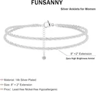 Menu Other Items Feedbacks About Us Contact Us Add To Favorites Sterling Silver Ankle Bracelets for Women - Waterproof Silver Anklets Trendy 925 Sterling Silver/14K Gold Plated Stackable Sparkling Link Chian Anklet Bracelet Set for Women Dainty Jewelry Gift Product Description Layered silver ankle bracelets for women Double-Layered full star silver anklet for women features a layered design that creates a unique and stylish look for your ankle. Layered silver ankle bracelets for women Set contains: 2mm Bead Chain;3mm Bead Chain;4mm Bead Chain. These anklets are suitable for layering as well as being worn alone. Triple-layered sterling silver anklet for women Triple-layered sterling silver cubic zircon anklet for women, glittering in the sunlight,is the perfect accessory for the summer, can better express your personality and highlight your beauty. Layered Gold ankle bracelets for women Set contains: 2 Snake Chain;Paperclip Link Chain;2 Bead Chain;Cuban Chain. These anklets are suitable for layering as well as being worn alone. Layered Gold ankle bracelets for women Set contains: Paperclip Link Chain;2 Mirror Chain;Satellite Chain;Box Chain. These anklets are suitable for layering as well as being worn alone. Waterproof Gold ankle bracelets for women Wear these anklets, embrace the sea and beach with friends, it‘s lead free, nickel free and hypoallergenic, smooth and shiny,non tarnish,wearing Comfortable. Beauty Choices for Women Add to Cart Add to Cart Add to Cart Add to Cart Add to Cart Customer Reviews 4.2 out of 5 stars 375 4.2 out of 5 stars 375 4.2 out of 5 stars 375 4.5 out of 5 stars 31 4.5 out of 5 stars 31 4.5 out of 5 stars 31 4.5 out of 5 stars 31 Price $9.99 $ 9 . 99 $6.99 $ 6 . 99 $6.99 $ 6 . 99 — $6.99 $ 6 . 99 — $6.99 $ 6 . 99 Brand FUNSANNY FUNSANNY FUNSANNY FUNSANNY FUNSANNY FUNSANNY FUNSANNY Material 14k gold plated 14k gold plated 14k gold plated 14k gold plated 14k gold plated 14k gold plated 14k gold plated Hypoallergenic ✔ ✔ ✔ ✔ ✔ ✔ ✔ No tarnish ✔ ✔ ✔ ✔ ✔ ✔ ✔ Gift Package ✔ ✔ ✔ ✔ ✔ ✔ ✔ Item Specification Item model number ZS-KAUC-N0GM Style 2pc sparkling-sl Chain Cable Chain Gem Type no gemstone Material Brass Model number 2AK-23409-SLW Item Length 8.5 inches Department womens Clasp Lobster Claw SHIPPING FREE FAST SHIPPING FREE SHIPPING We are always working hard to ensure your package arrives as soon as possible. Please understand that some factors like weather, high postal traffic, and the performance of shipping companies are outside of our control. We offer free shipping to the lower 48 states. We do not accept P.O. Boxes. Please provide a physical address. If you have a problem or question regarding your transaction please contact us immediately. We will work with you to resolve any problem you may have. Thank you