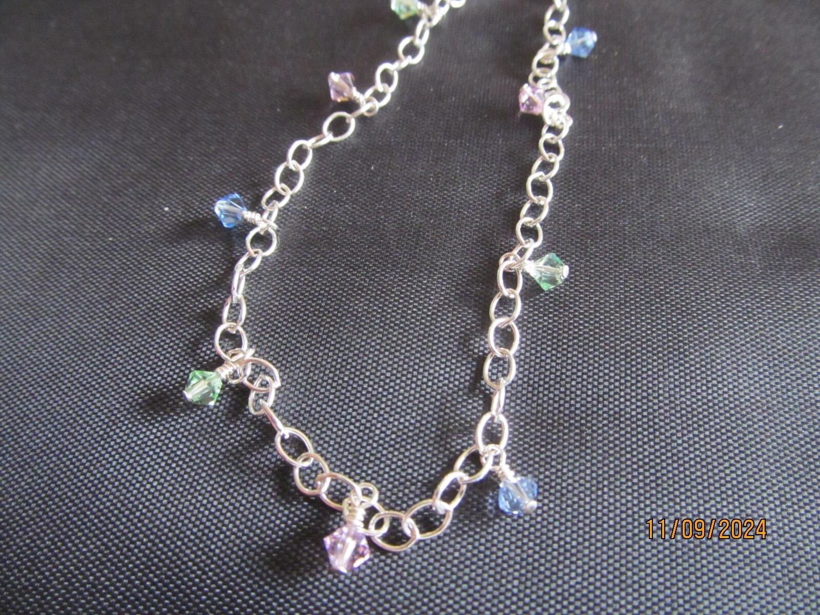 Anklet, Hand Made Anklet with Swarovski 4mm Crystals. Anklet fits 9" to 10" depending on where you connect it. CLOSE OUT, Below cost. When these are gone, there will not be any more. Using up the last of our crystals, This will be it. Crystal Color is as shown We use 19 strand Jewelers wire which is very strong and durable. These will not break easily like cloth and stretchy anklets do. All connectors and chain are 925 Sterling Silver. We are a USA Florida Jeweler, retiring and liquidating our inventory, time to slow down. Everything is new and we guarantee that these are 100% 925 sterling silver. Shipping will be USPS First Class. Have a great day and happy bidding.