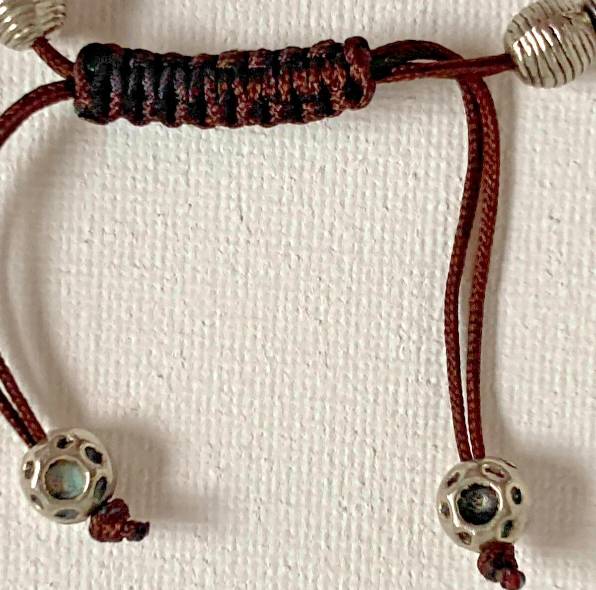 The product is a sterling silver bracelet featuring round beads on a macrame slide closure. The bracelet uses high-quality sterling metal with a purity of 925, making it a durable and elegant piece of jewelry. The beaded style adds a trendy touch, while the slide closure ensures a secure fit for the wearer. Perfect for adding a touch of sophistication to any outfit, this bracelet is a versatile and timeless accessory.
