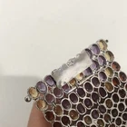 Gorgeous amethyst garnet citrine bracelet. In beautiful condition, must have. The bracelet has 310 gems and 150-carat total weight. It has a beautiful design with the gems. It measures 49 MM wide. It would fit an 8” wrist. Thank you for looking at this listing