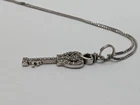 Delicate CZ key pendant ( made in China) with a 22" box chain (made in Italy). We do not clean or polish any vintage jewelry. We do not disturb vintage items to keep their original patina, leaving it to your discretion. To that end, you may polish or keep them in the same condition. Our items are not always perfect and occasionally we aren't perfect either (although we do our best). We are not experts regarding this item. We are not authorized agents or representatives of any name brand, © or ® item. We simply have lovely, pre-owned items available for sale. It might have some surface wear, aging, discoloration, patina or other minor imperfections. We do our best to describe things given our training, knowledge, ability & research. Ultimately... You make the call. Please use photos to evaluate this item, as they a part of the description. You are bidding on the exact item pictured. Colors can vary from screen to screen. (which means the actual item may be lighter or darker than it appears on your device). Photos are often taken with a degree of magnification, typically showing more imperfections than the naked eye will see. As such, many people say that their items look better in person. Feel free to ask any questions regarding this item All items will normally be shipped within two business days via USPS with tracking. If you purchase multiple items, we do combine shipping. Bid with confidence as we sell only authentic sterling merchandise. Good luck and happy bidding! L 3.8 A